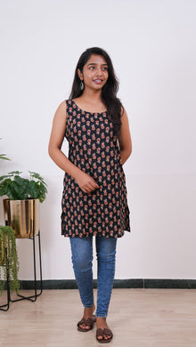 Niraa cotton angrakha kurti- Black
