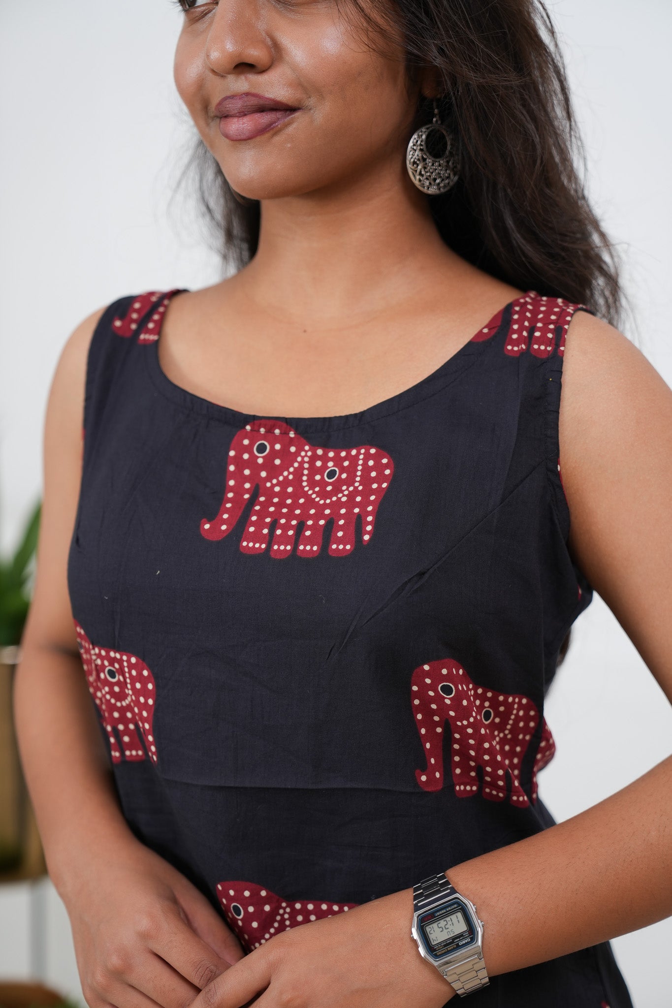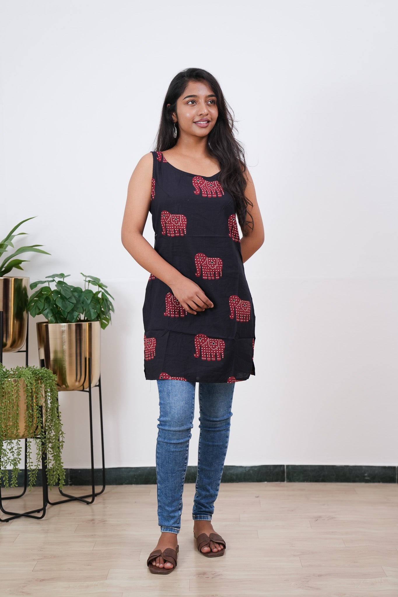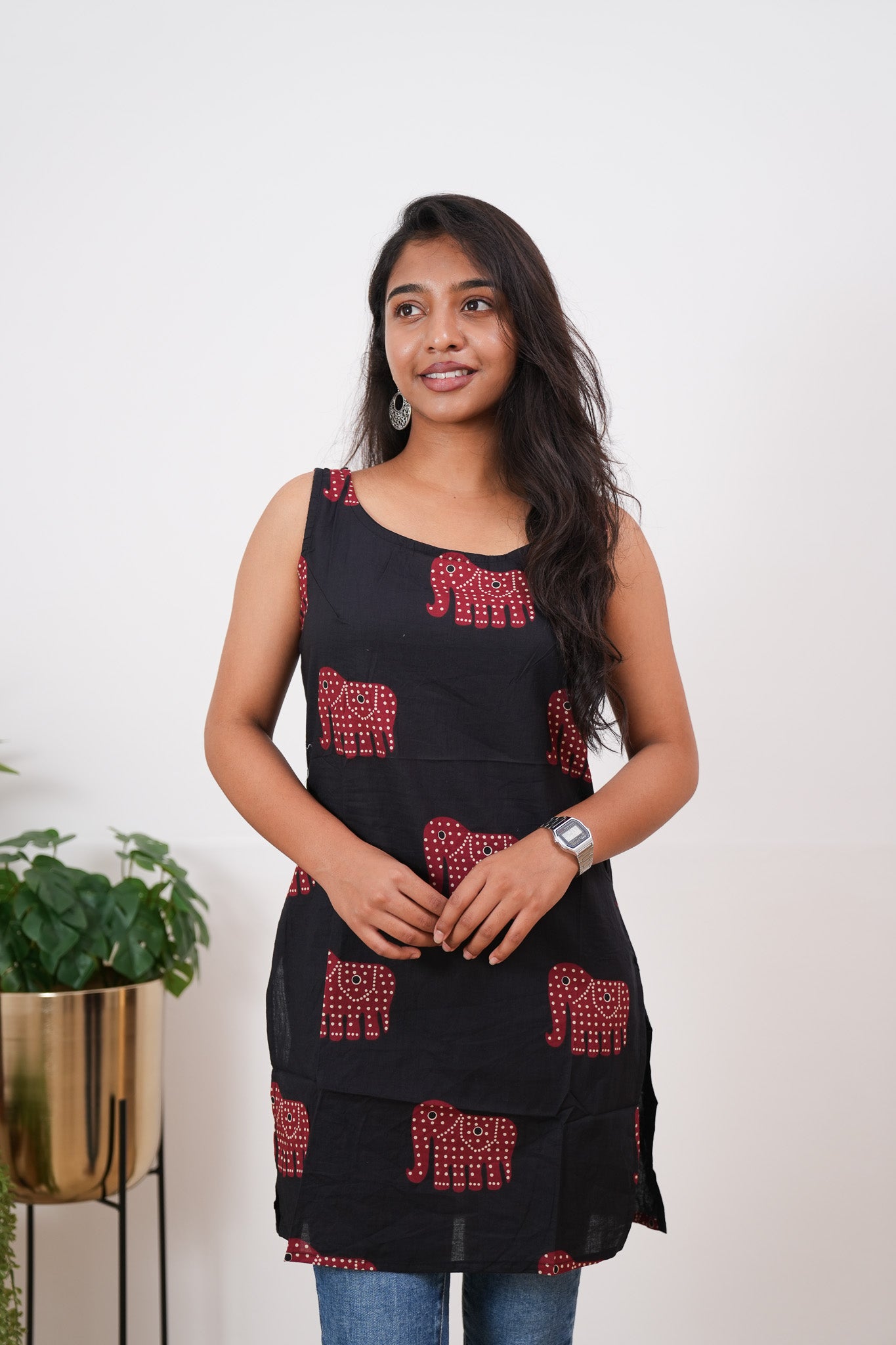 Black elephant cotton tunic