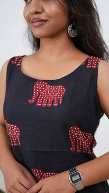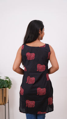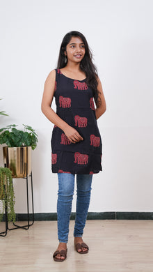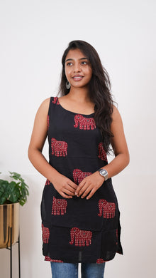 The tunic has round neck and it is sleeveless. It has beautiful pattern all over the top. It can be paired with jeans or skirt to complete the look.
