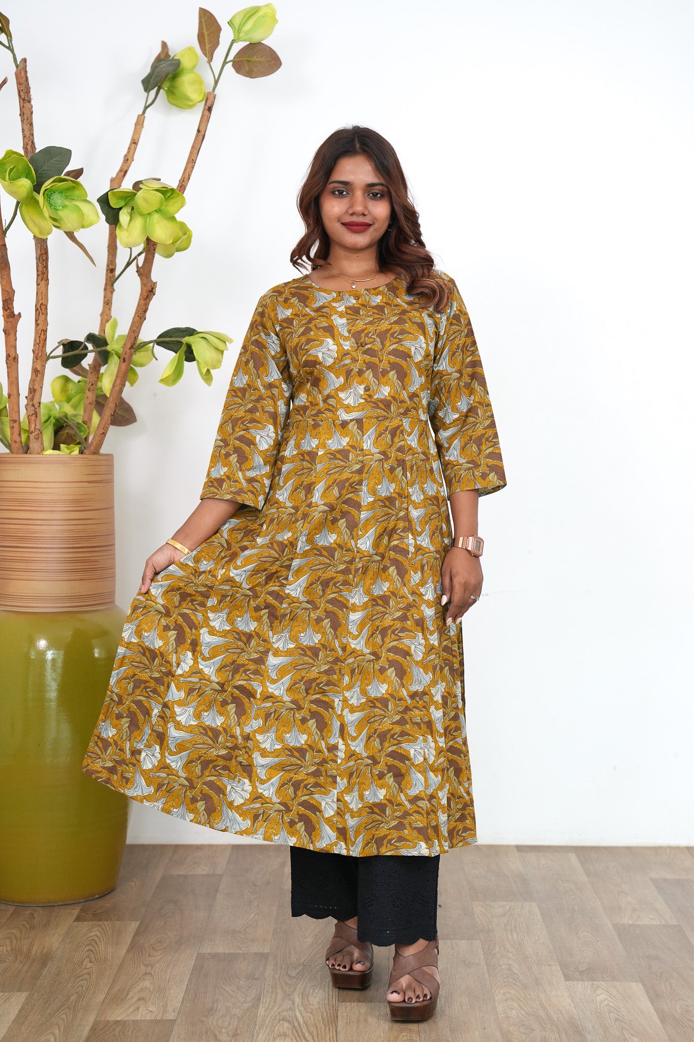 Canary floral cotton anarkali kurti