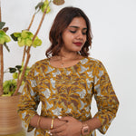Canary floral anarkali kurti with round neck and with floral prints all over the dress. They can be paired with cotton pants to complete the look.