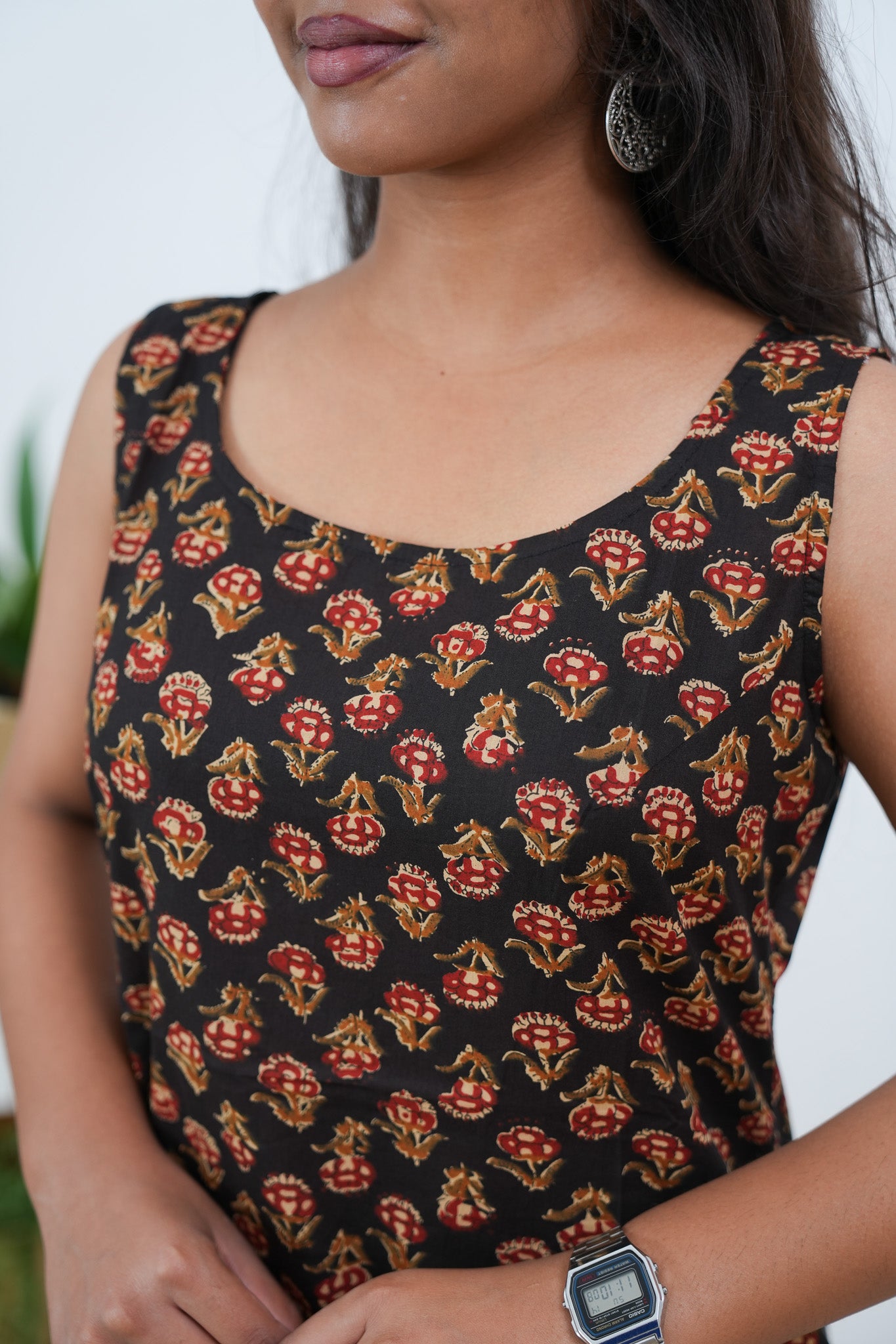 Black floral cotton tunic
