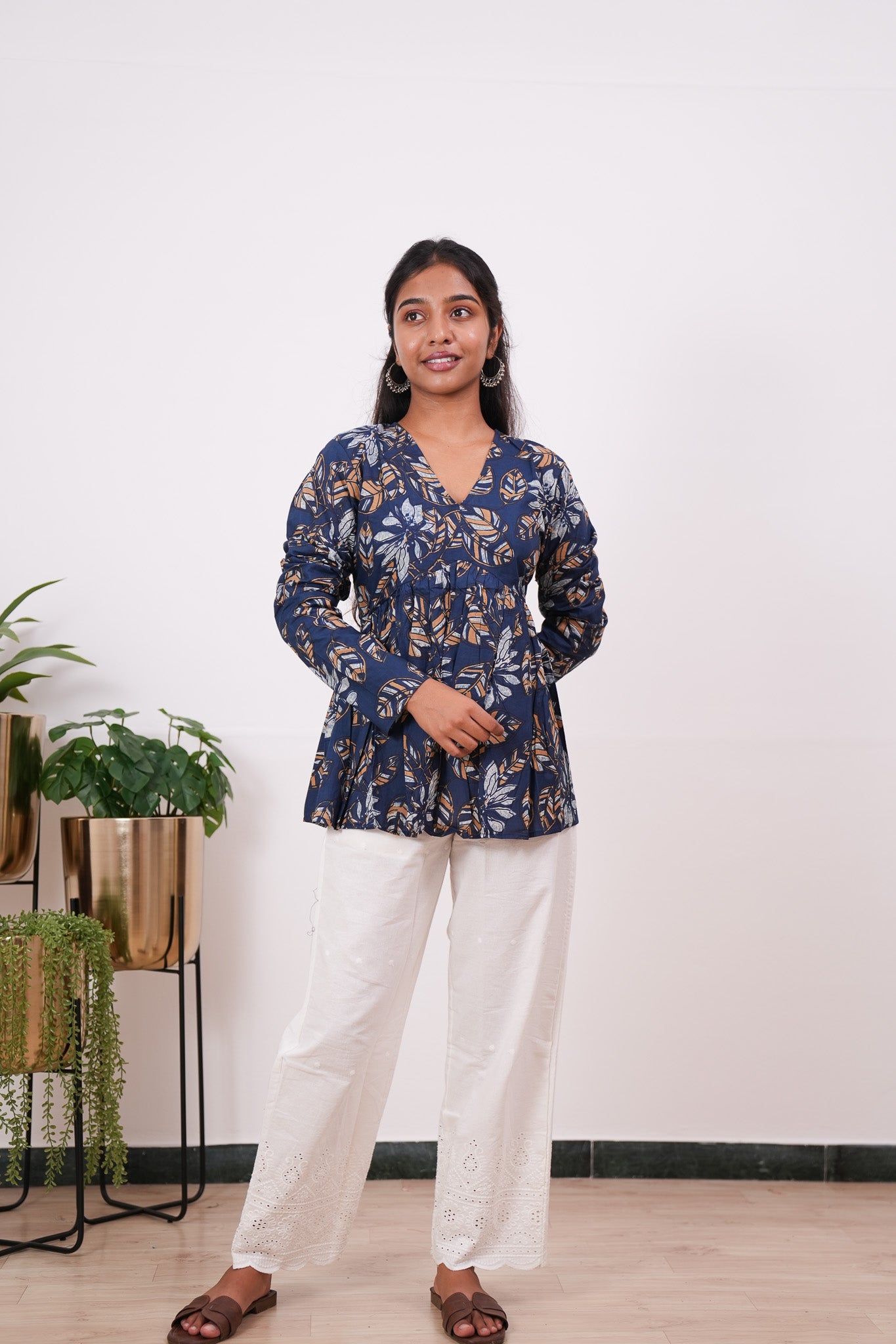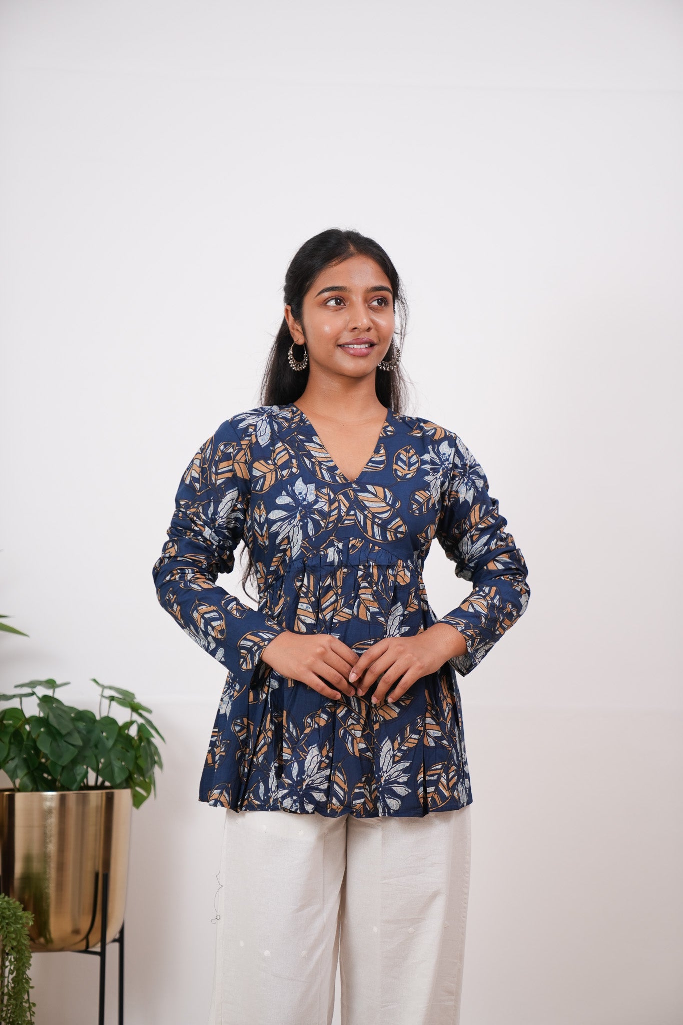 This cotton short kurti has V neck and full length sleeves they are extremely breathable and light weight making it perfect for all day comfort. They can be paired with jeans , skirt or even cotton pants.