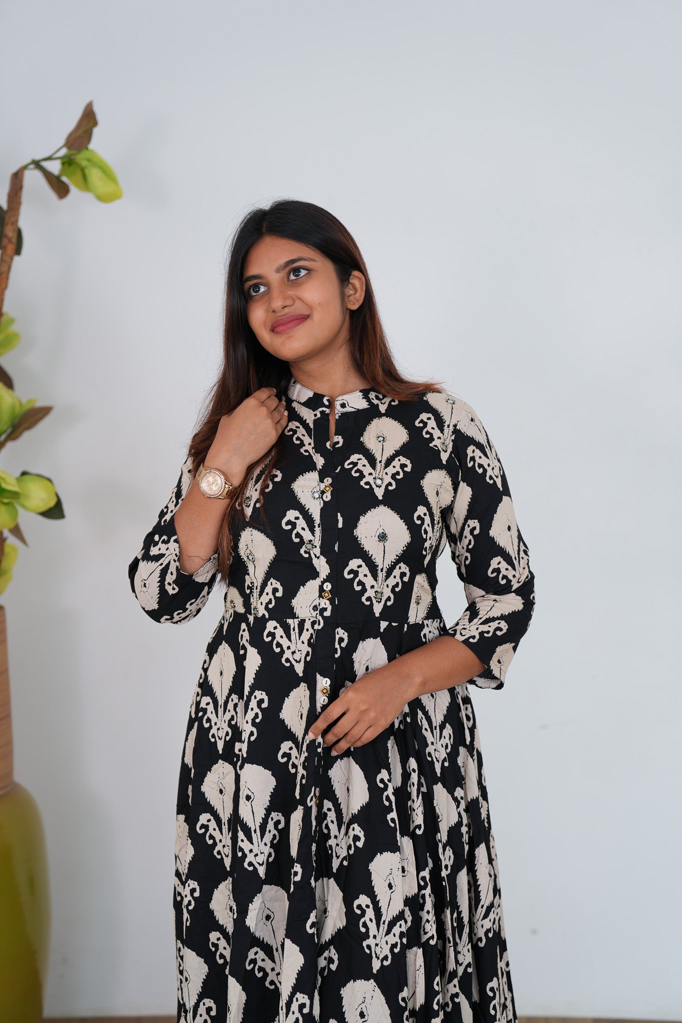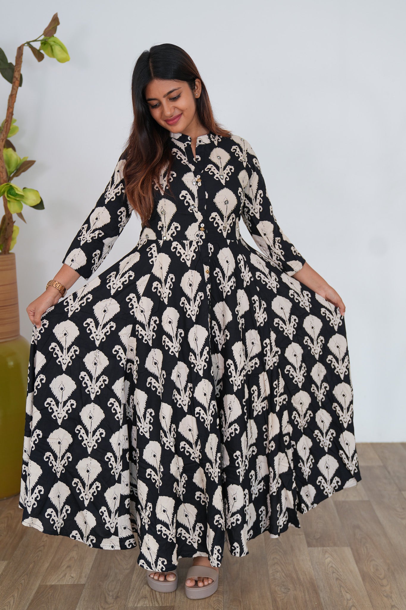 Black geometric long gown