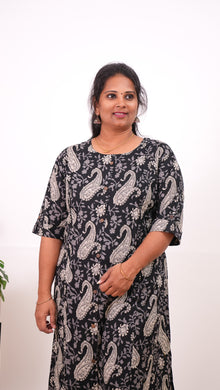 Black paisley plus cotton A-line kurti