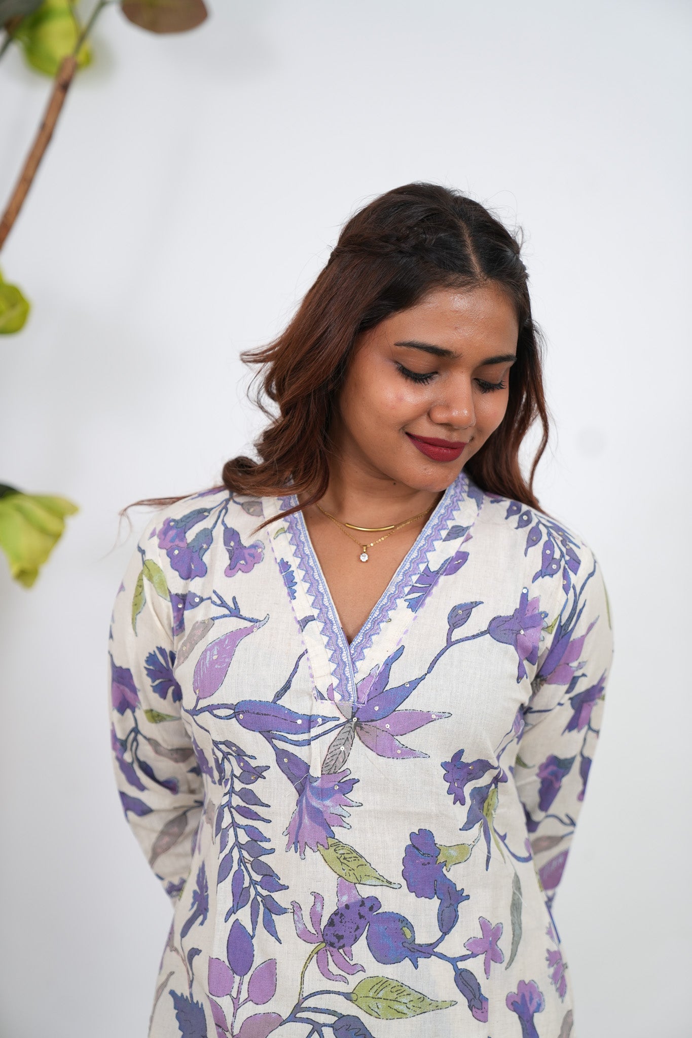 Lavender cotton co-ords set which can be paired together or with jeans for a easy breezy summer outfit.