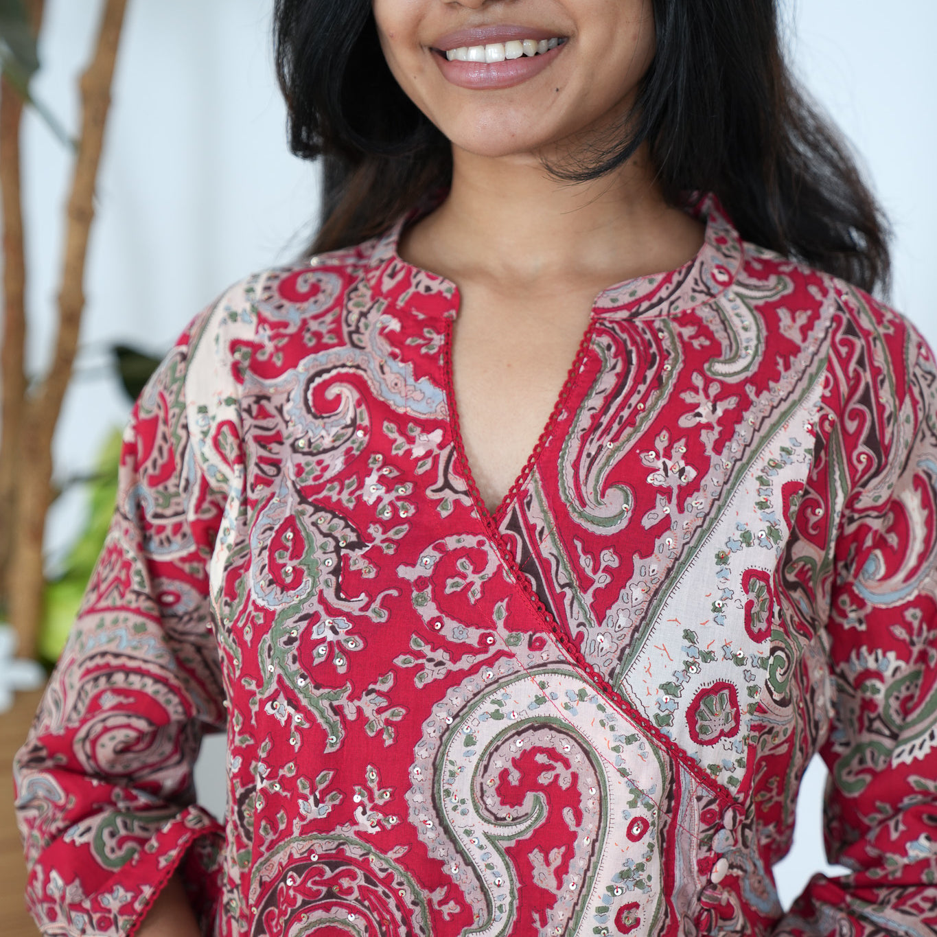 Red angrakha cotton co-ords set which can be paired together or with jeans for a easy breezy summer outfit.