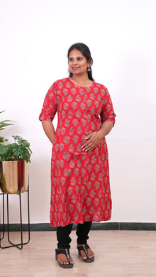 Niraa cotton angrakha kurti- Red