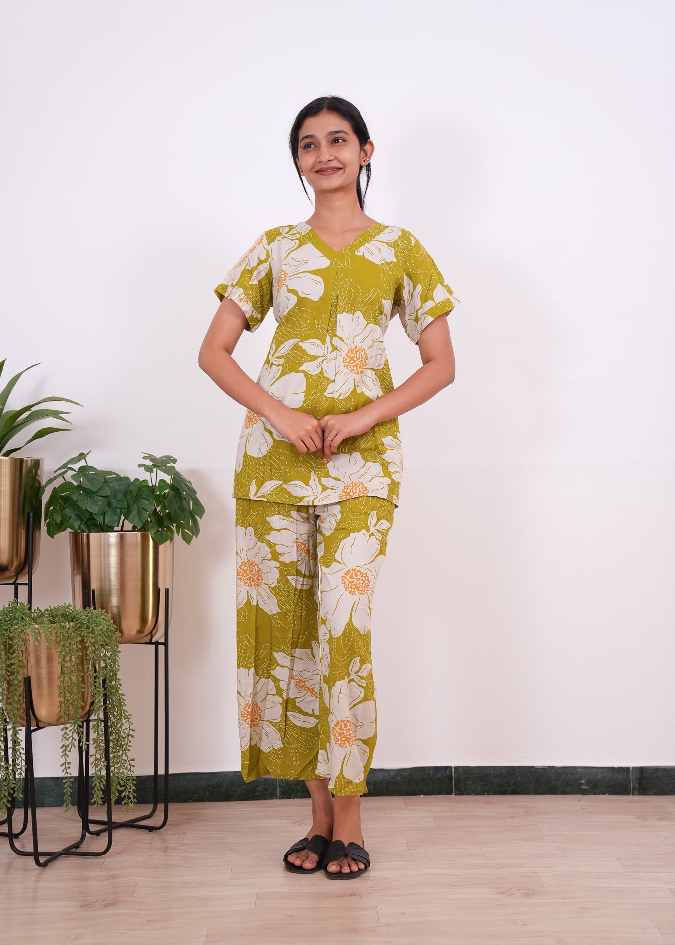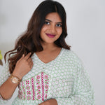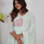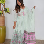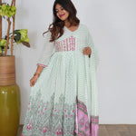 Green checked floral long gown that exudes elegance and sophistication. It has floral print throughout the gown.