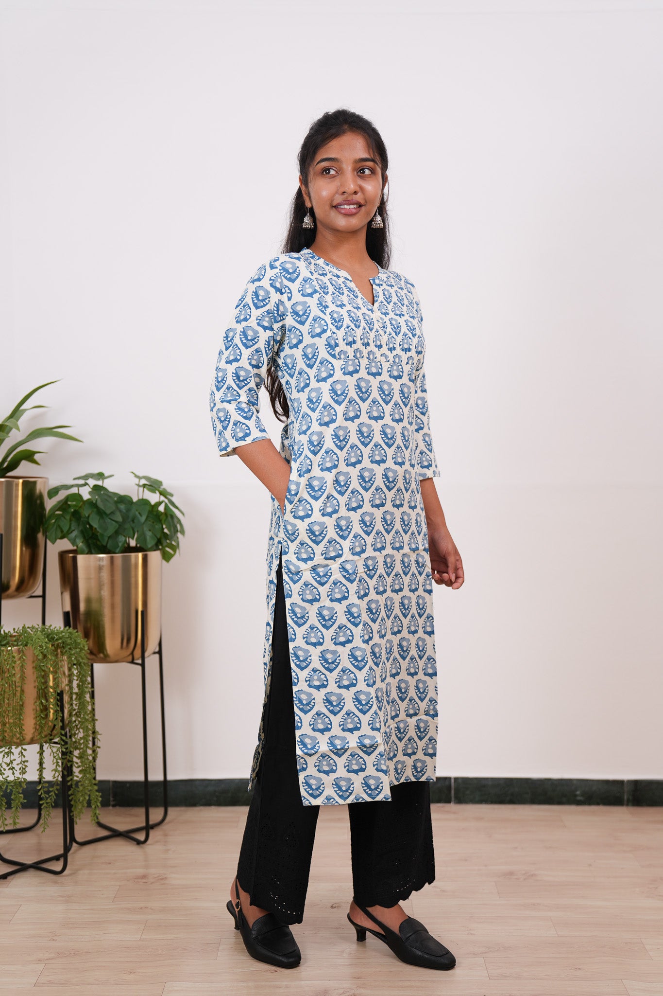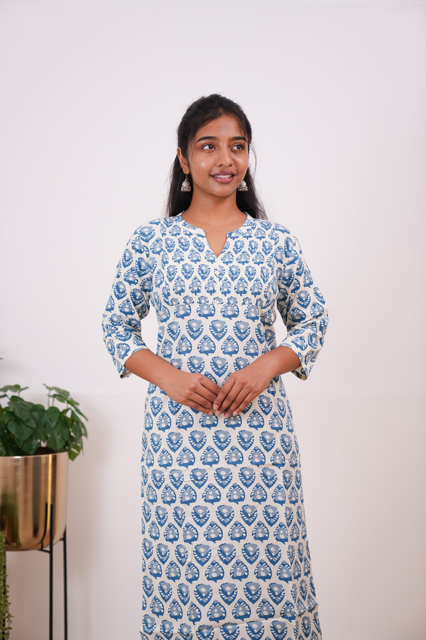 This cotton kurti has mandarin collar and 3/4 length sleeves they are extremely breathable and light weight making it perfect for all day comfort. They can be paired with jeans or even cotton pants.