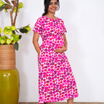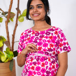 This maternity nursing wear with round neck and short sleeves that accomodates the bump throughout nine months and has lift up pattern for ease of nursing the baby. It is light weight and soft to help you get through pregnancy and breastfeeding journey with ease.