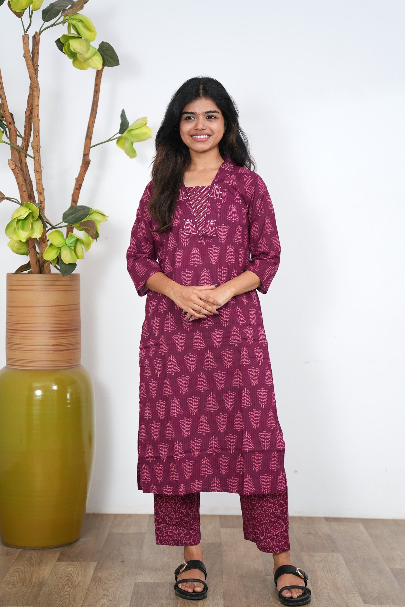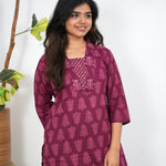 Brick red  v neck cotton co-ords set which can be paired together or with jeans for a easy breezy summer outfit. It comes with round neck and elbow length sleeves.