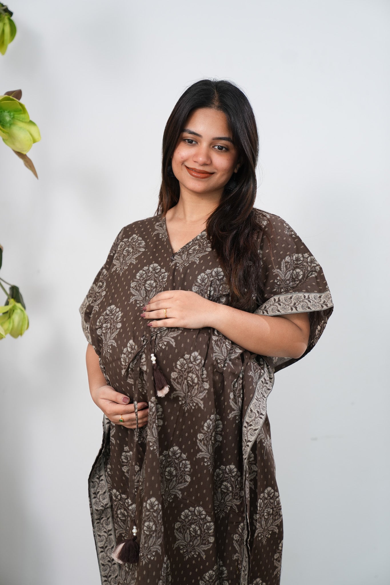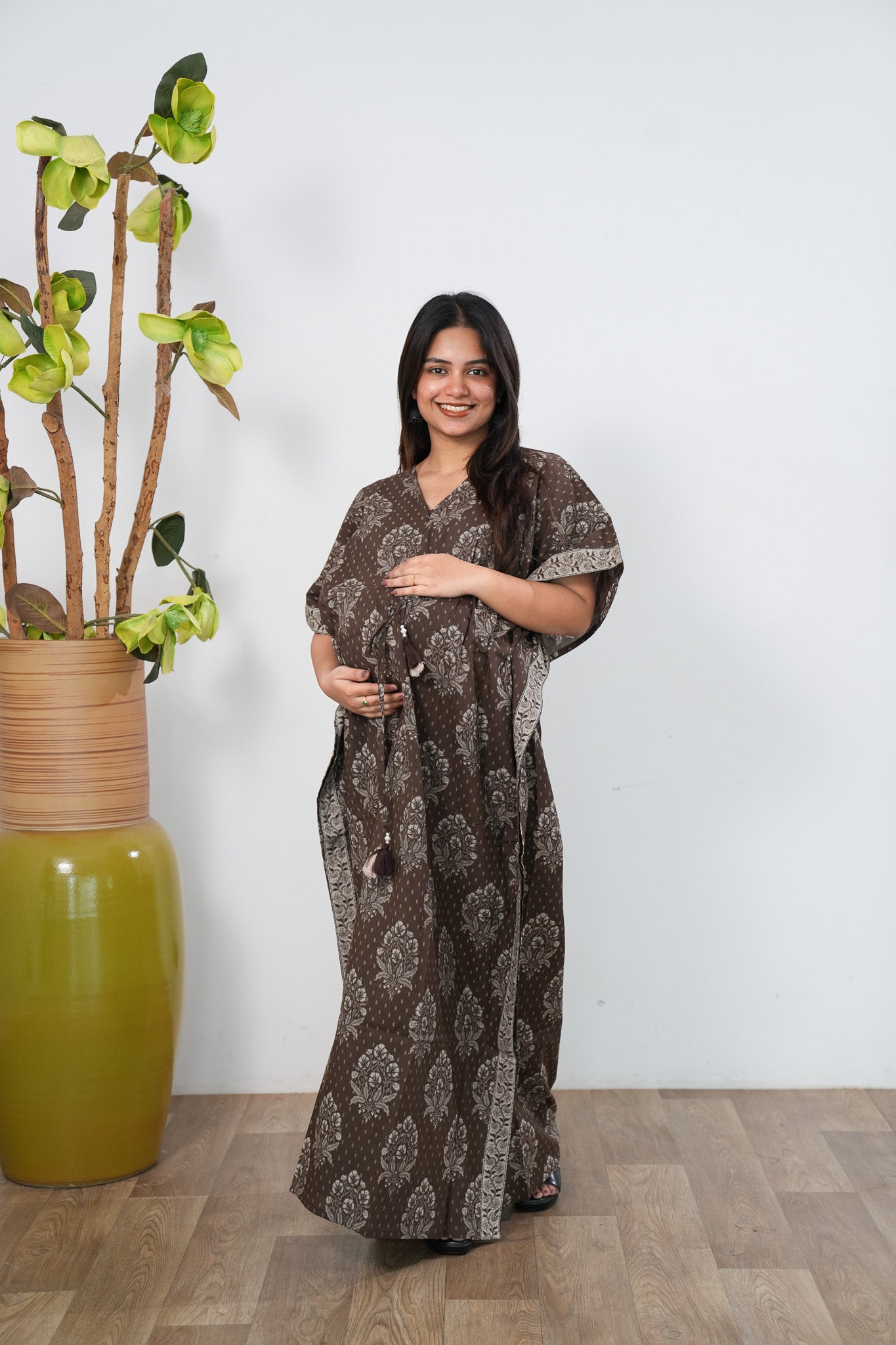 Chocolate cotton maternity nursing kaftan
