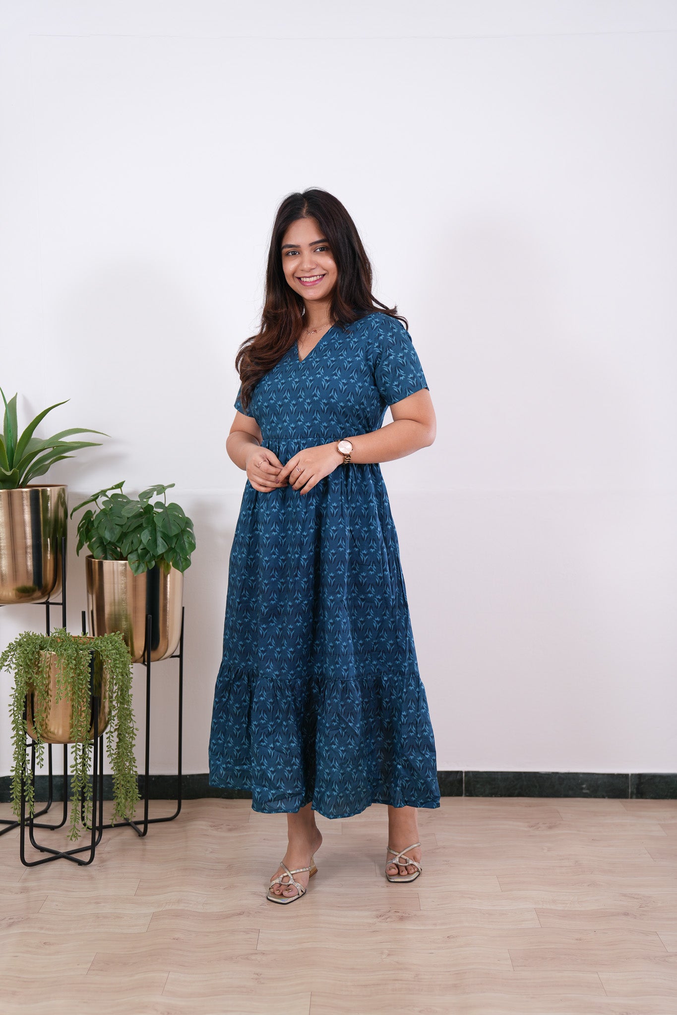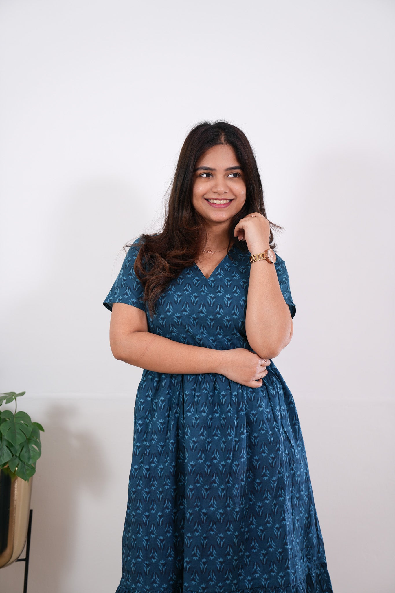 This cotton midi dress has a V neck and short sleeves . This dress is so versatile and so comfortable that you would want to wear it for shopping, brunch plans with girls and even dinner dates. They are 100% cotton.