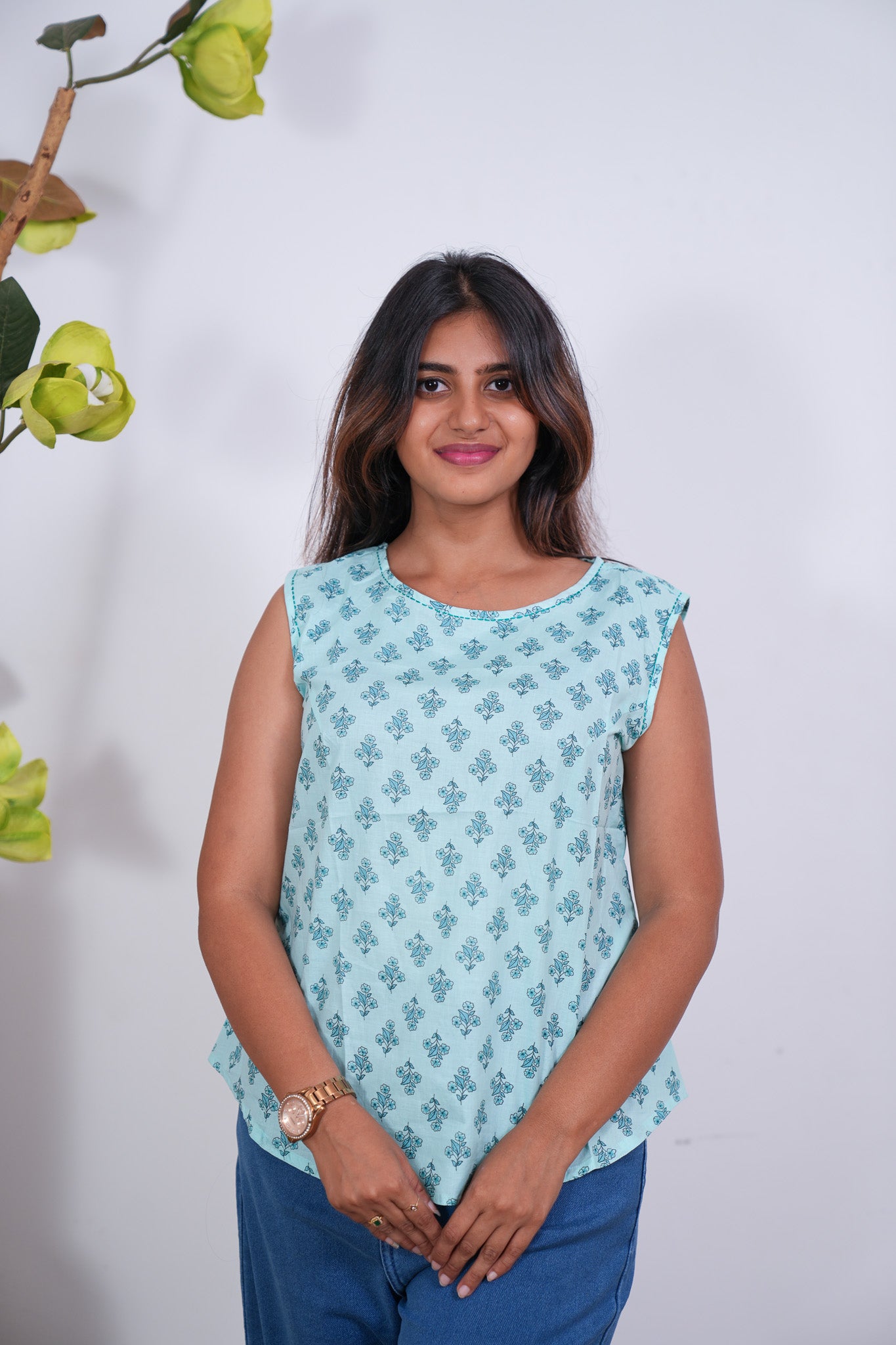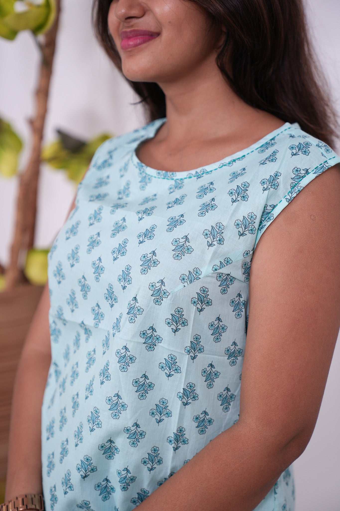 Ritu cotton tunic(attached sleeves) - Baby blue