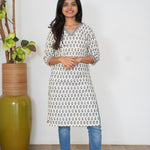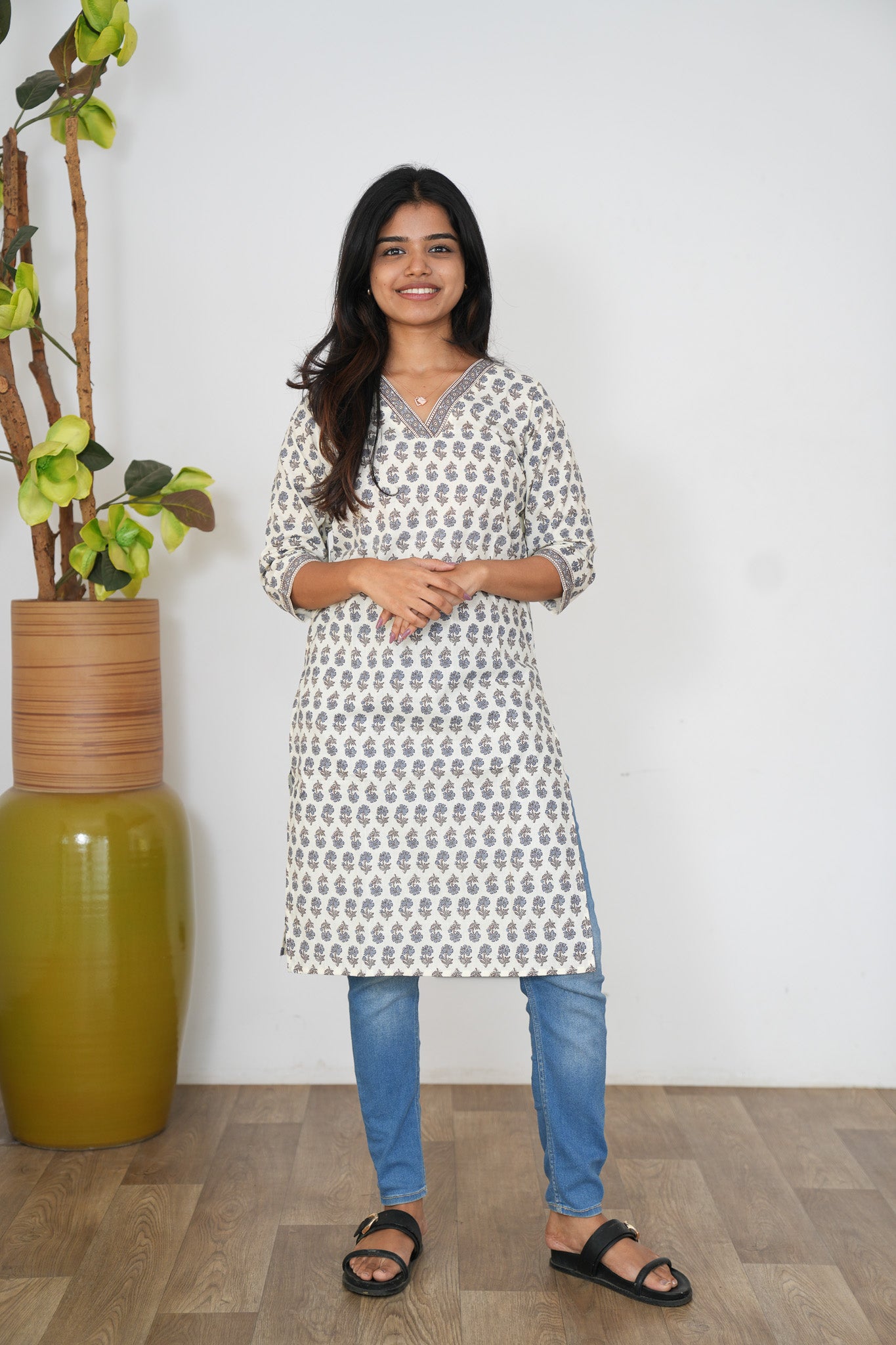 The kurti comes with a floral print all over the kurti with vibrant colour mixtures. It comes with V neck with elbow length sleeves. It can be paired with cotton pants or jeans to pull of that comfortable look!!