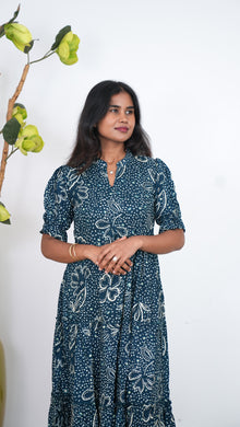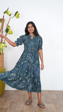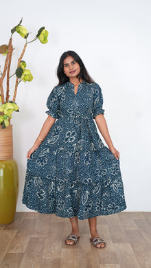 Turquoise lillies cotton shirt dress(attached sleeves)