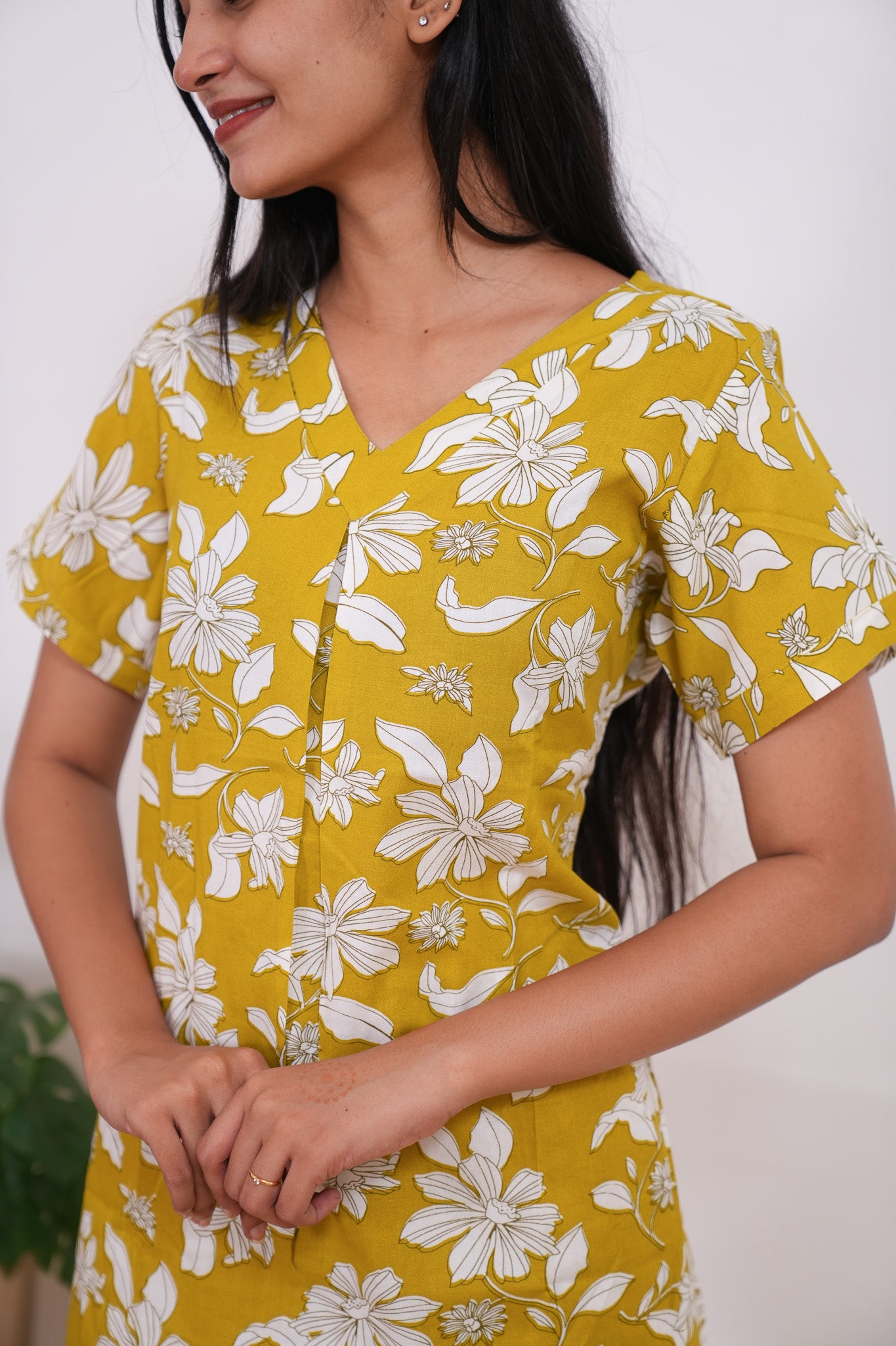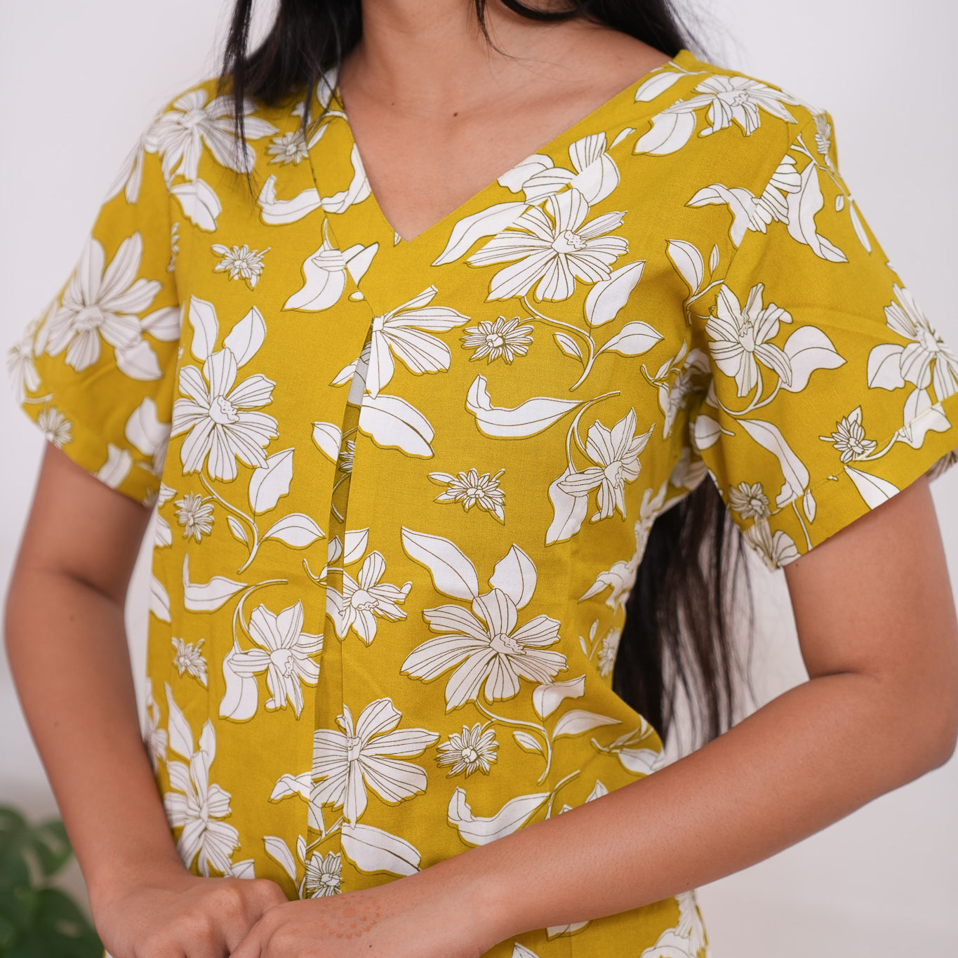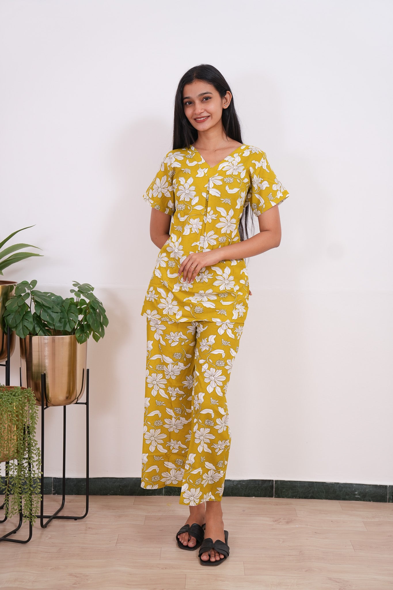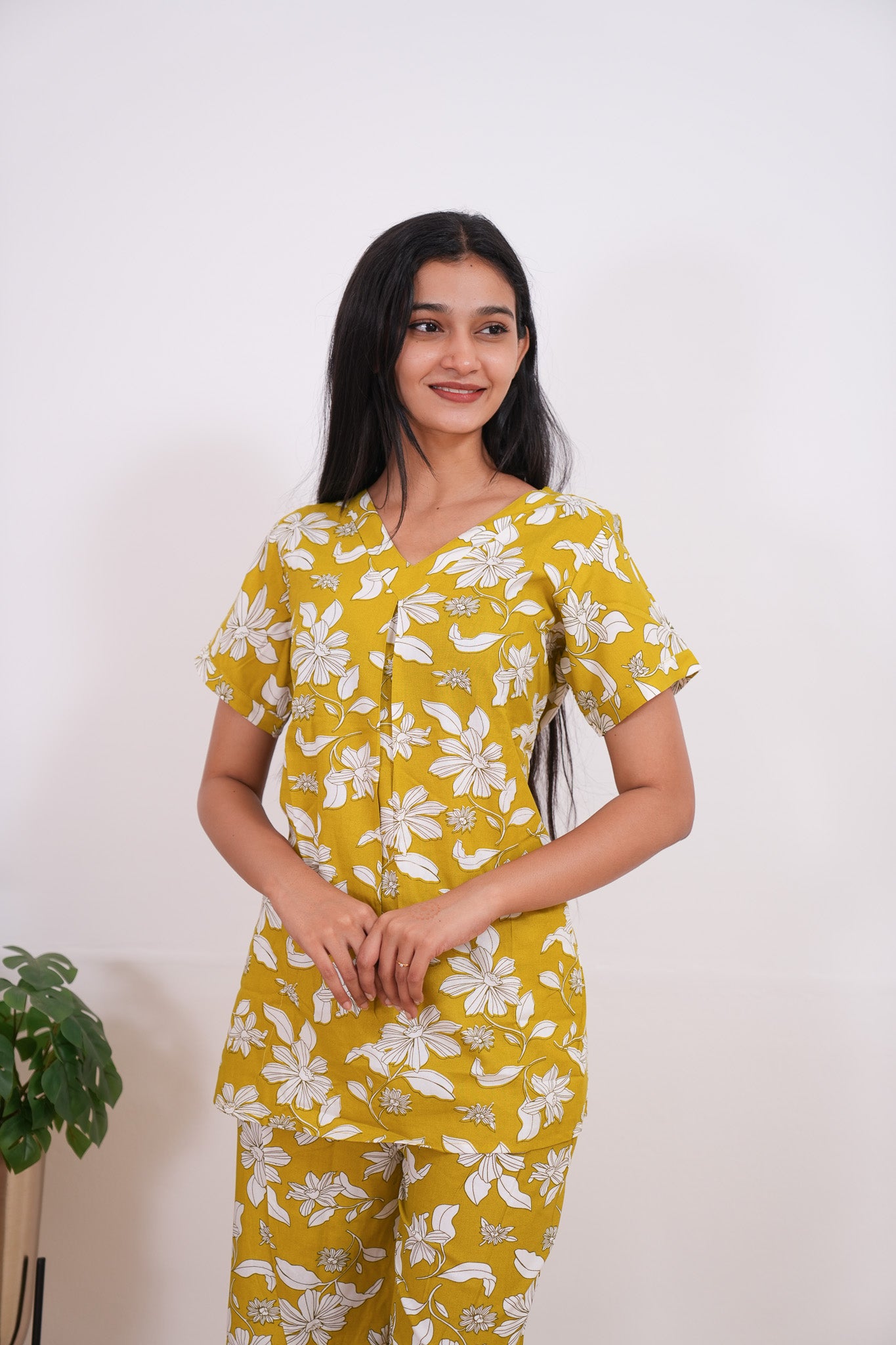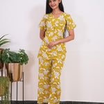 These Co-ords are so cozy, comfortable and chic making it perfect to relax at home or sleep in them. The top has a V neck with short length sleeves. Pant comes with elastic and it has a straight fit.