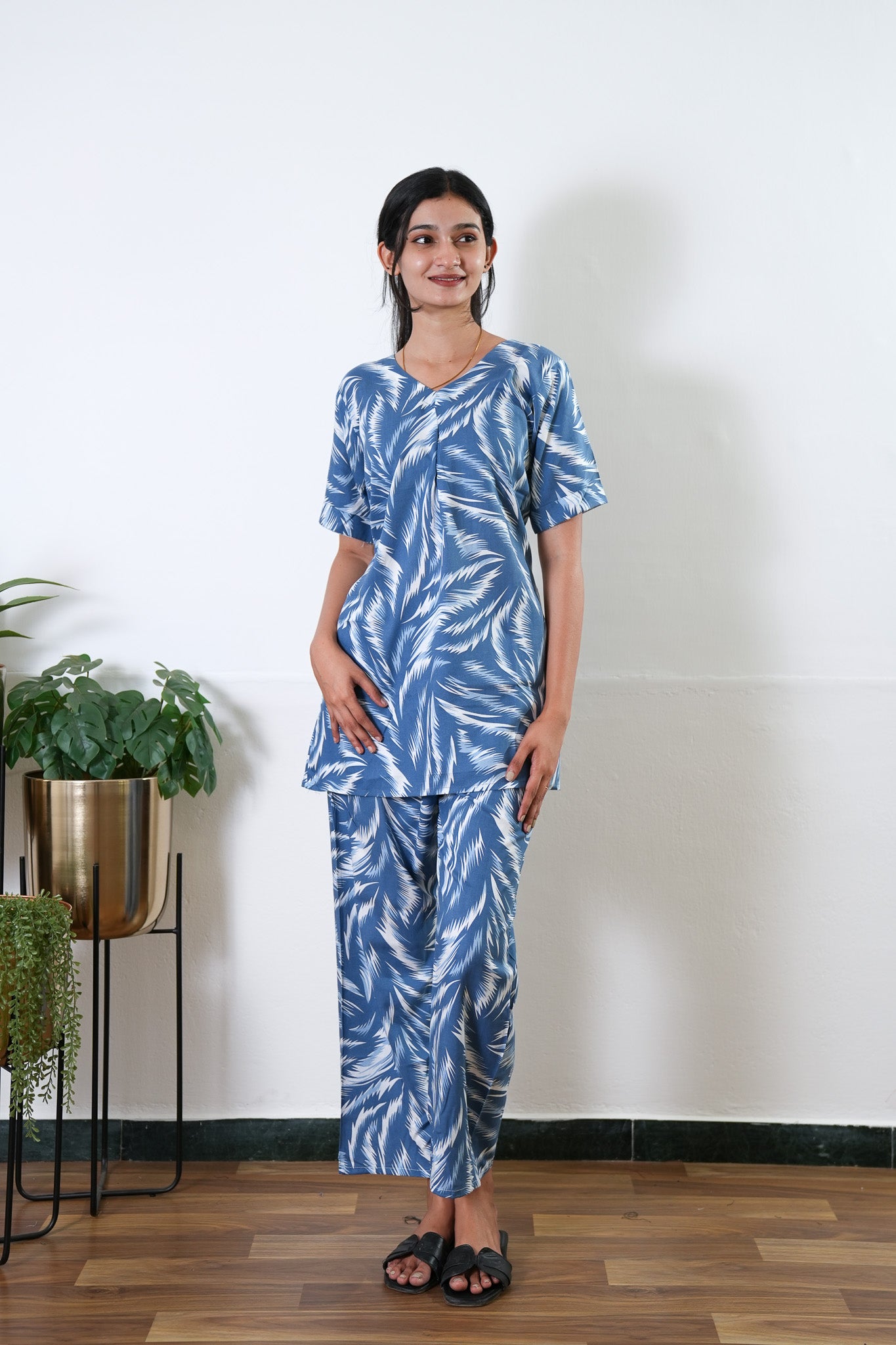 Navy feathers cotton lounge sleep wear