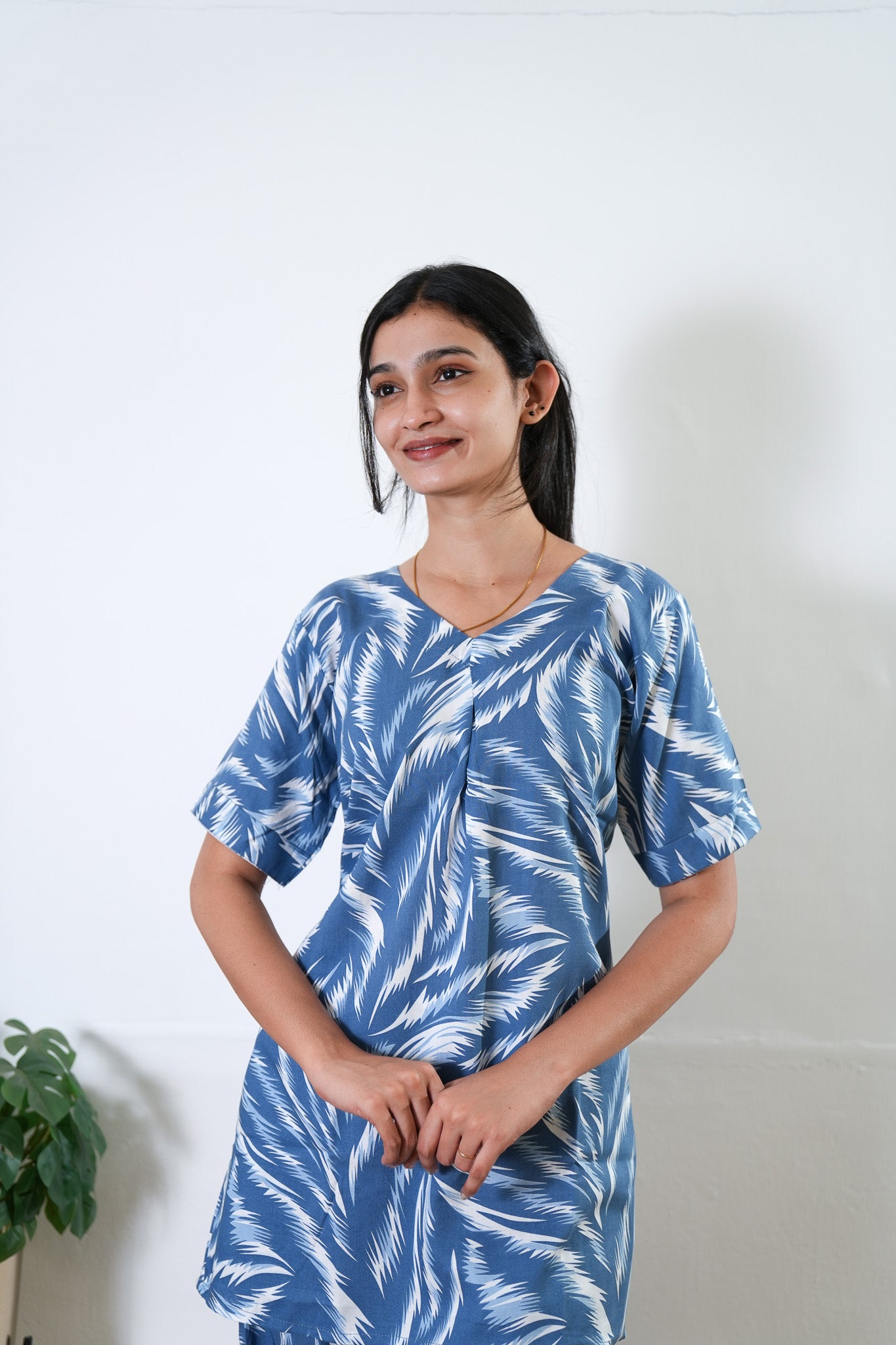 These Co-ords are so cozy, comfortable and chic making it perfect to relax at home or sleep in them. The top has a V neck with short length sleeves. Pant comes with elastic and it has a straight fit. Please order one size larger for a comfortable fit.