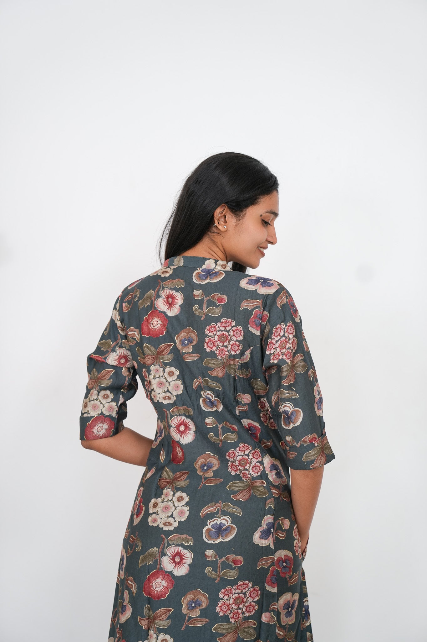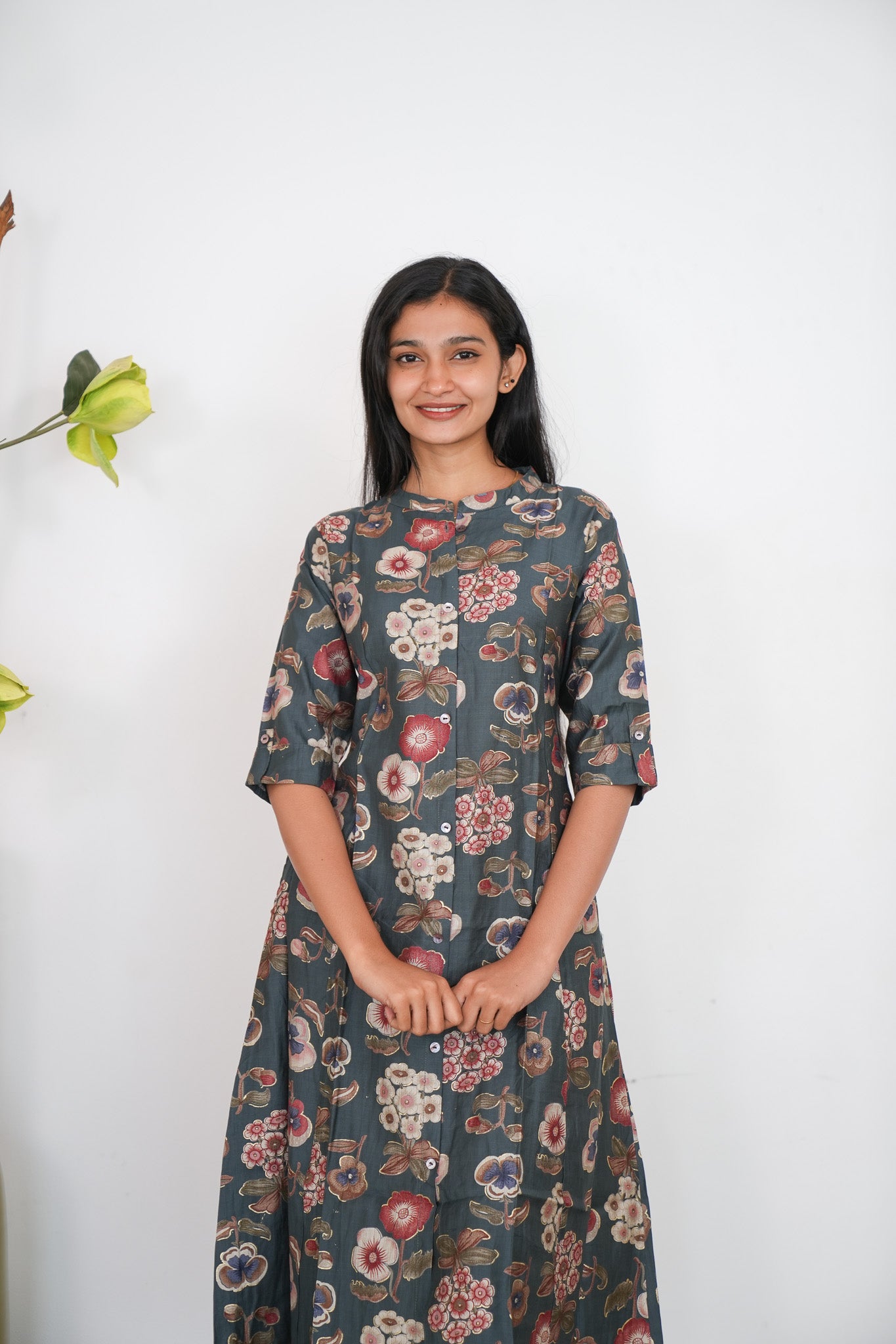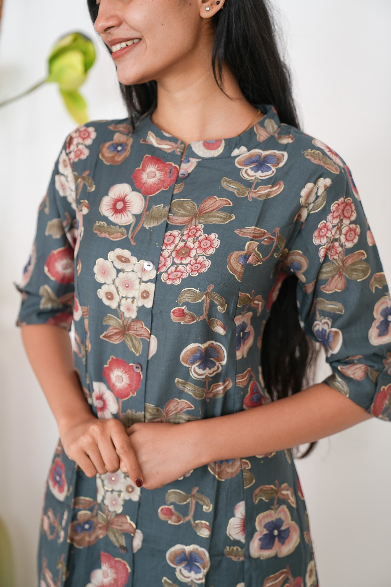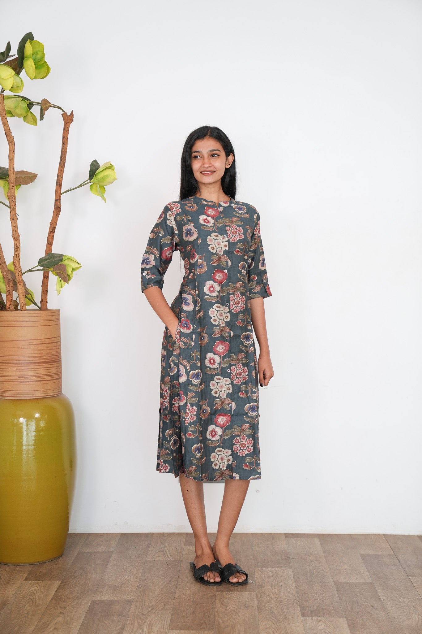 Turquoise mandarin cotton shirt dress that exudes elegance and sophistication. It has buttons running down which cannot be opened.