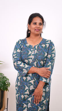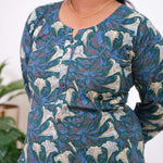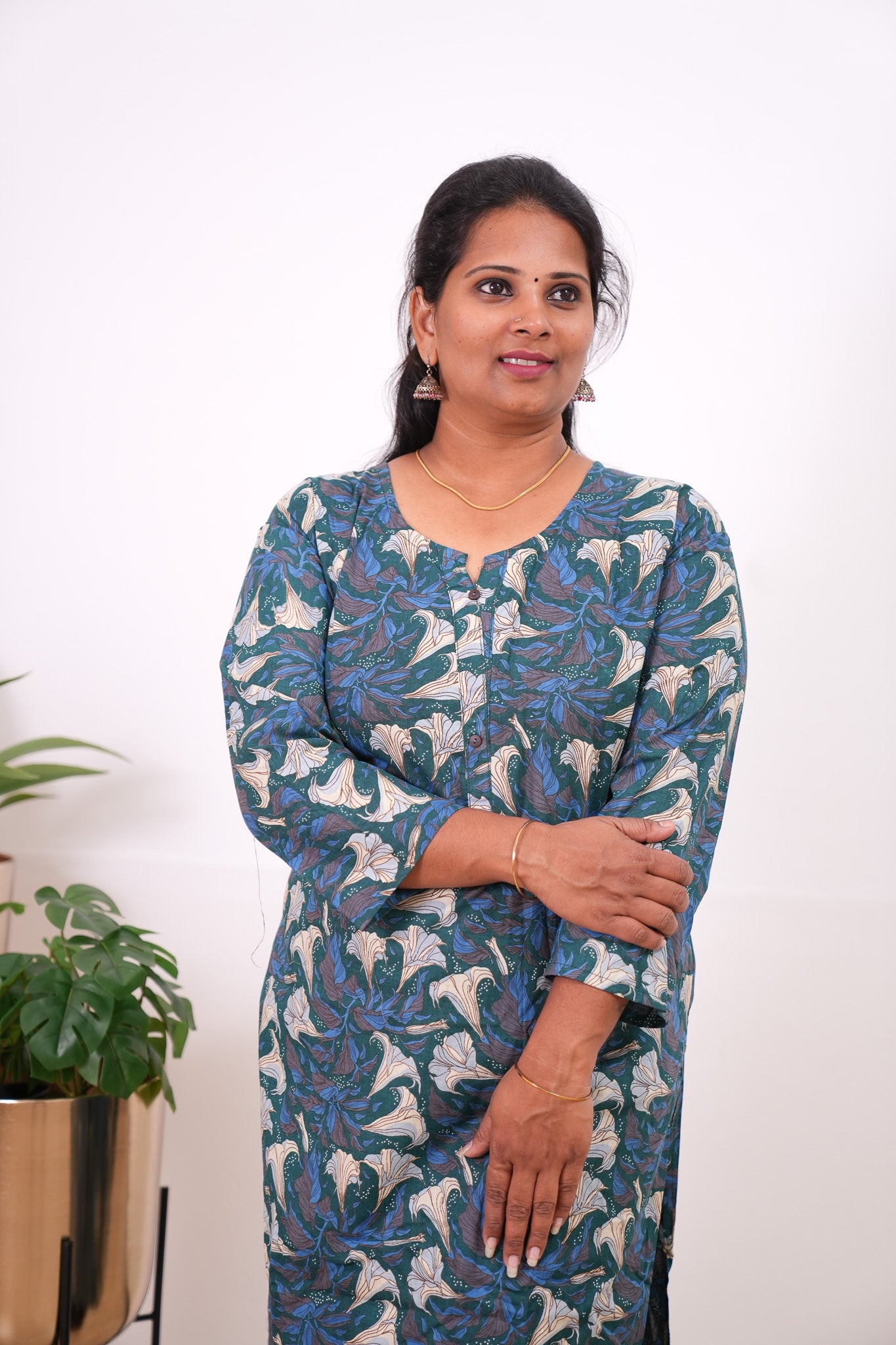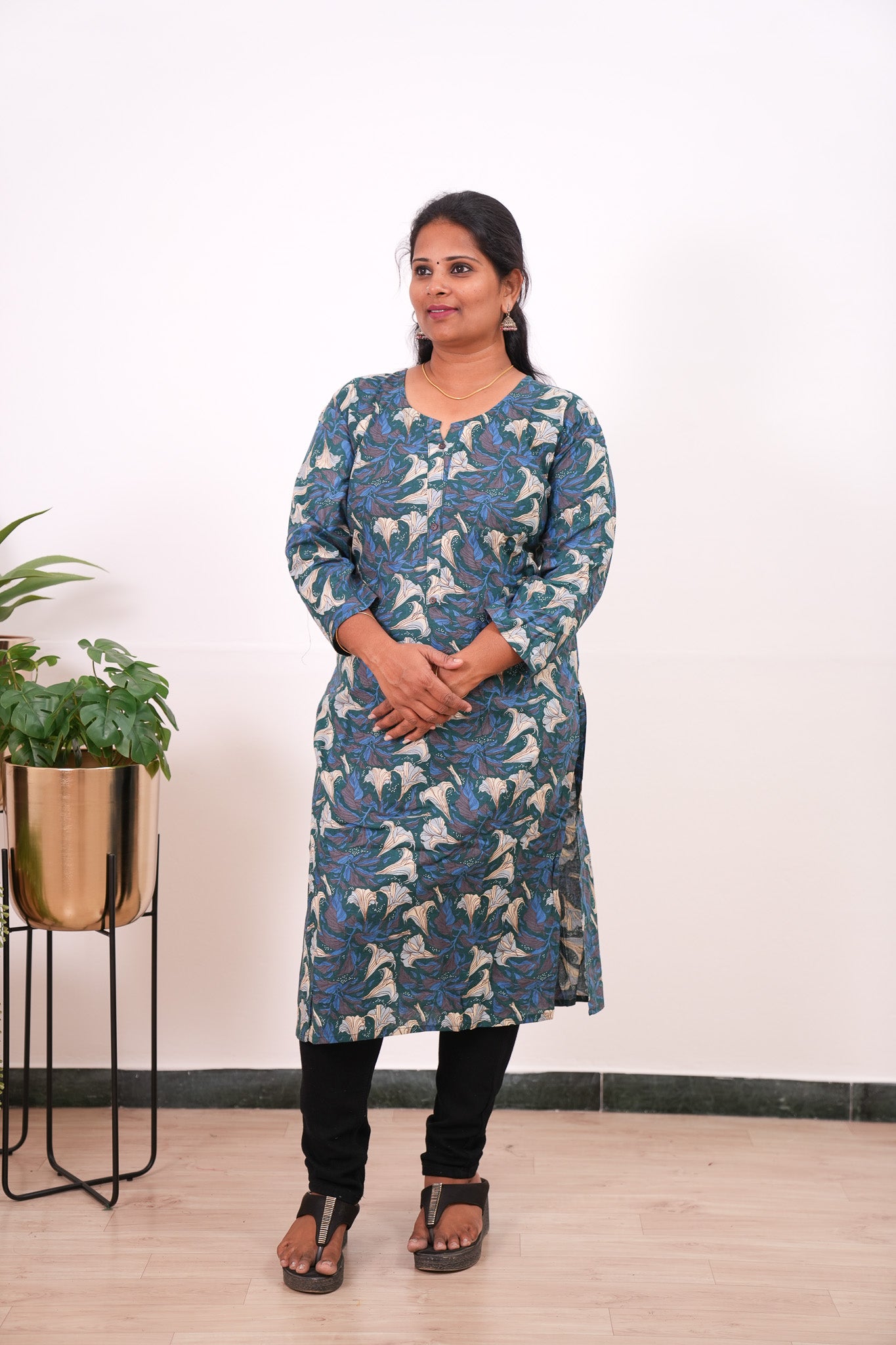The kurti comes with a floral print all over the kurti with vibrant colour mixtures. It comes with round neck with elbow length sleeves. It can be paired with cotton pants or jeans to pull of that comfortable look!!