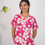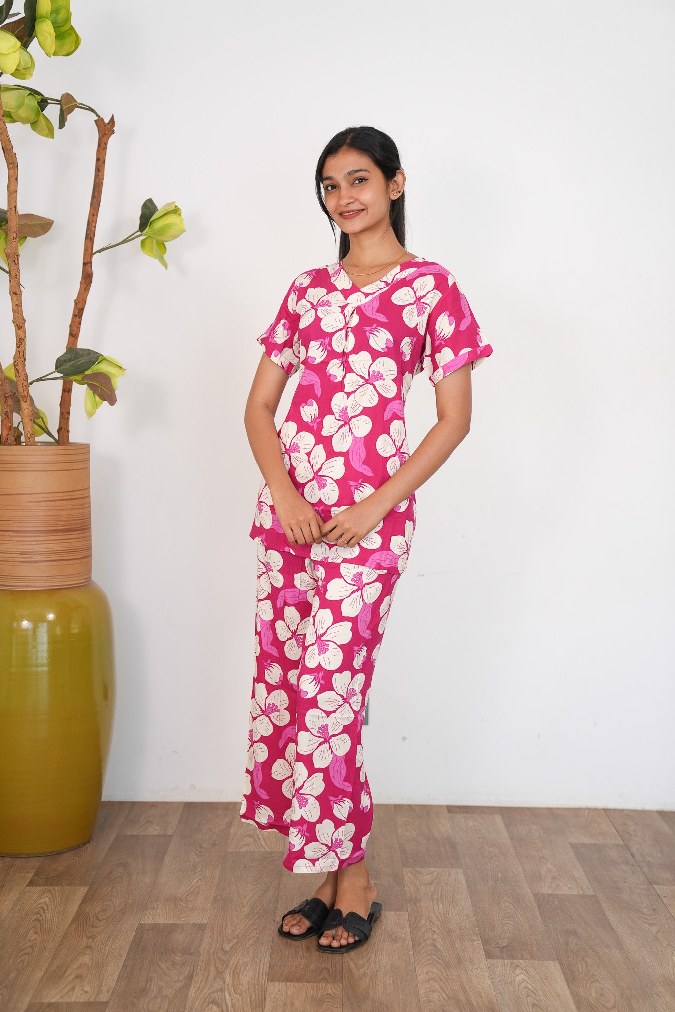 These Co-ords are so cozy, comfortable and chic making it perfect to relax at home or sleep in them. The top has a V neck with short length sleeves. Pant comes with elastic and it has a straight fit.
