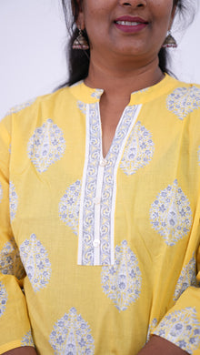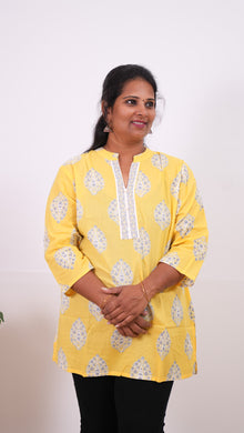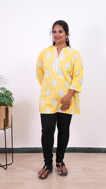 The short kurti comes with a floral print all over the kurti with vibrant colour mixtures. It comes with round neck with elbow length sleeves. It can be paired with cotton pants or jeans to pull of that comfortable look!!