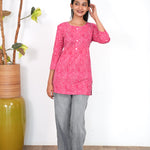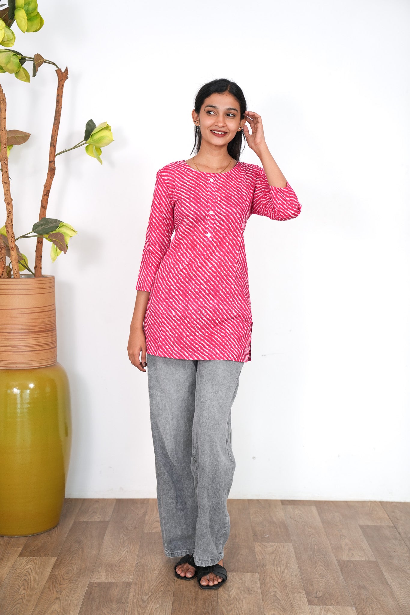 This cotton short kurti has round neck and 3/4 length sleeves they are extremely breathable and light weight making it perfect for all day comfort. They can be paired with jeans , skirt or even cotton pants.