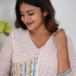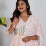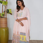 Orange checked floral long gown with dupatta