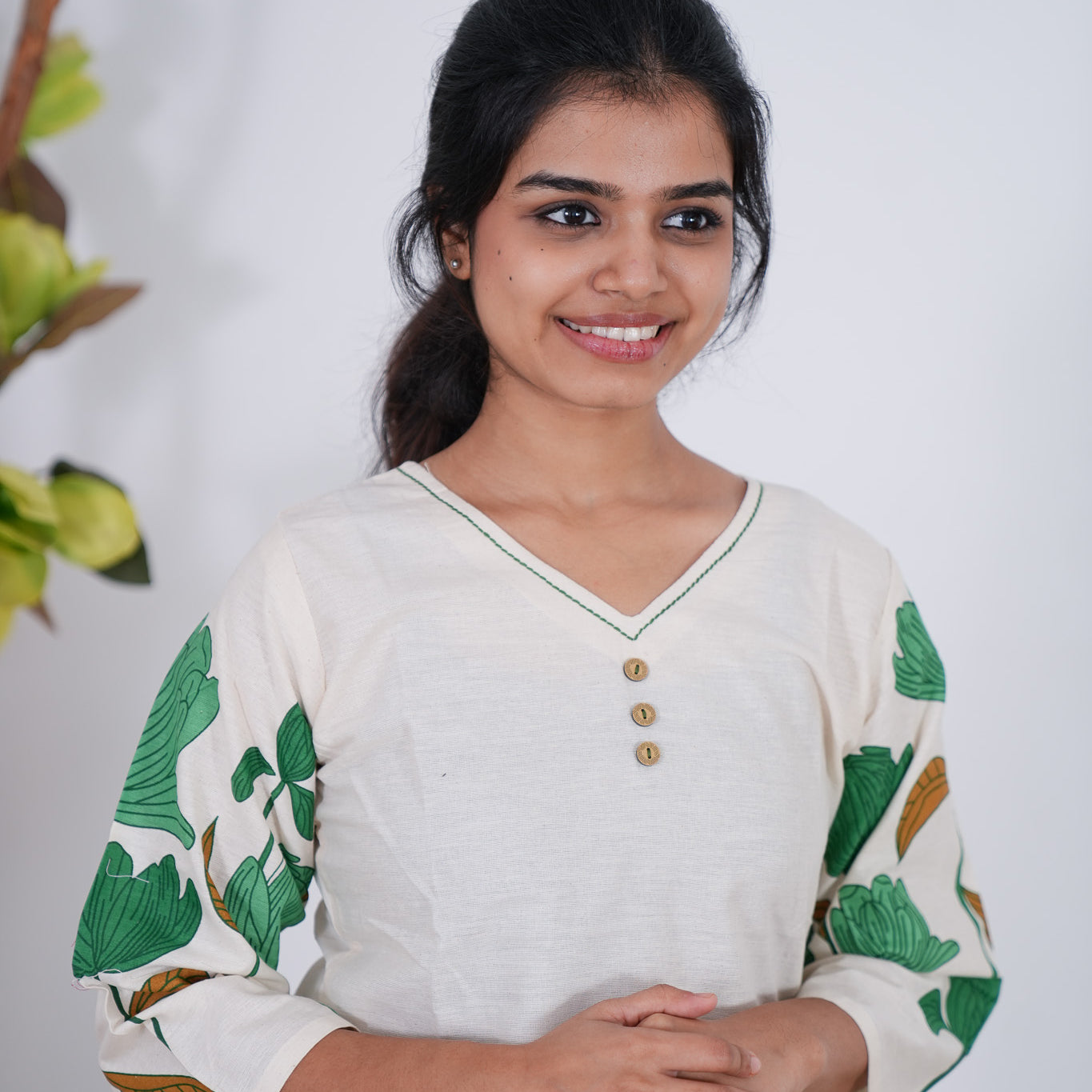 These Co-ords are so cozy, comfortable and chic making it perfect for brunch and a girl's day out! The kurta has a round neck and 3/4 sleeves. Pant comes with elastic and has a palazzo fit.