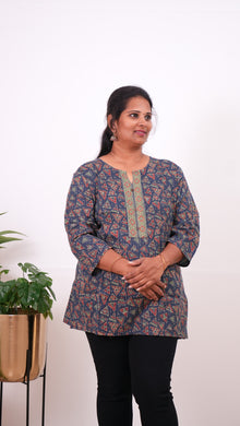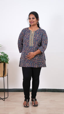 The short kurti comes with a floral print all over the kurti with vibrant colour mixtures. It comes with round neck with elbow length sleeves. It can be paired with cotton pants or jeans to pull of that comfortable look!!