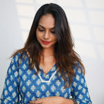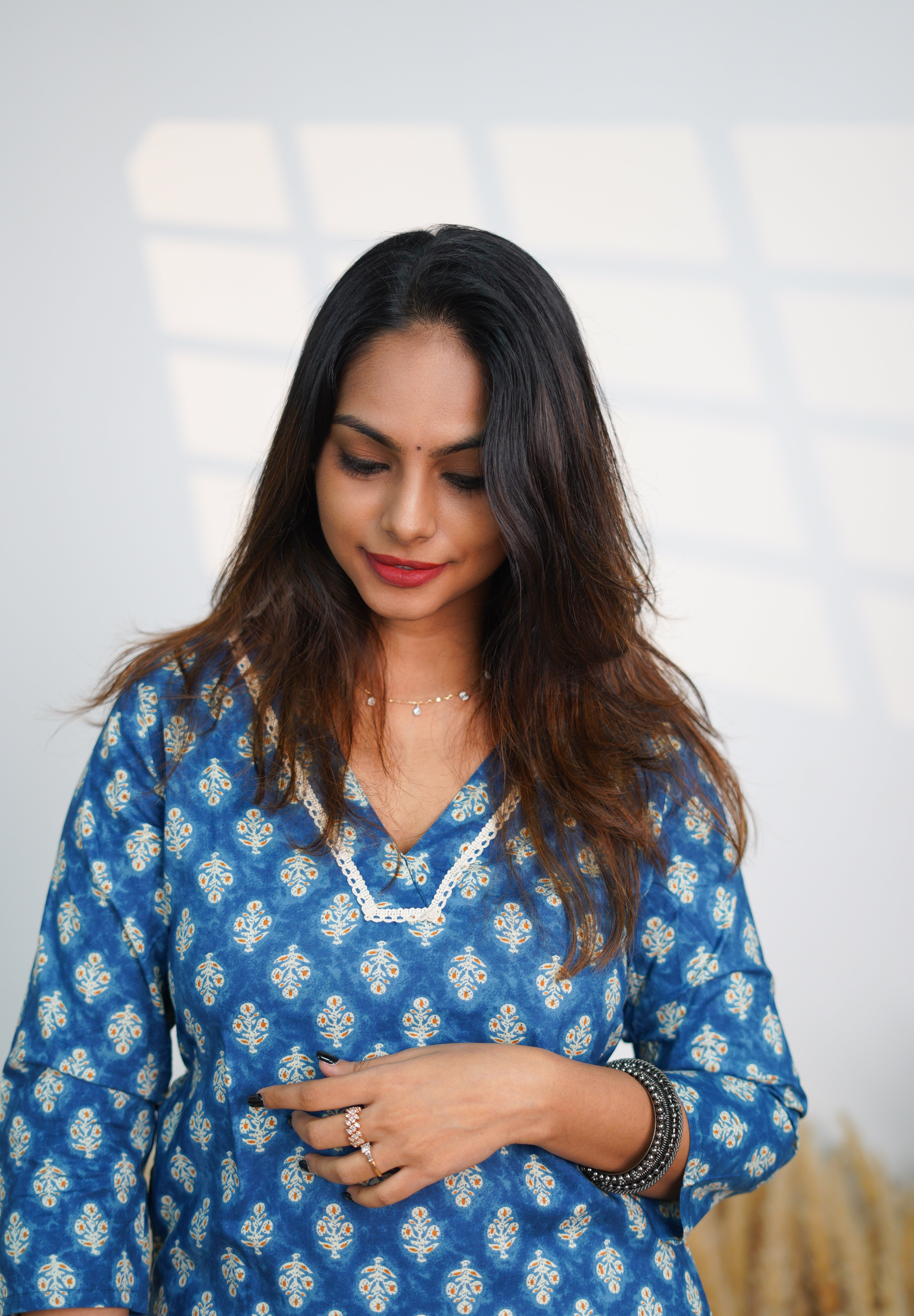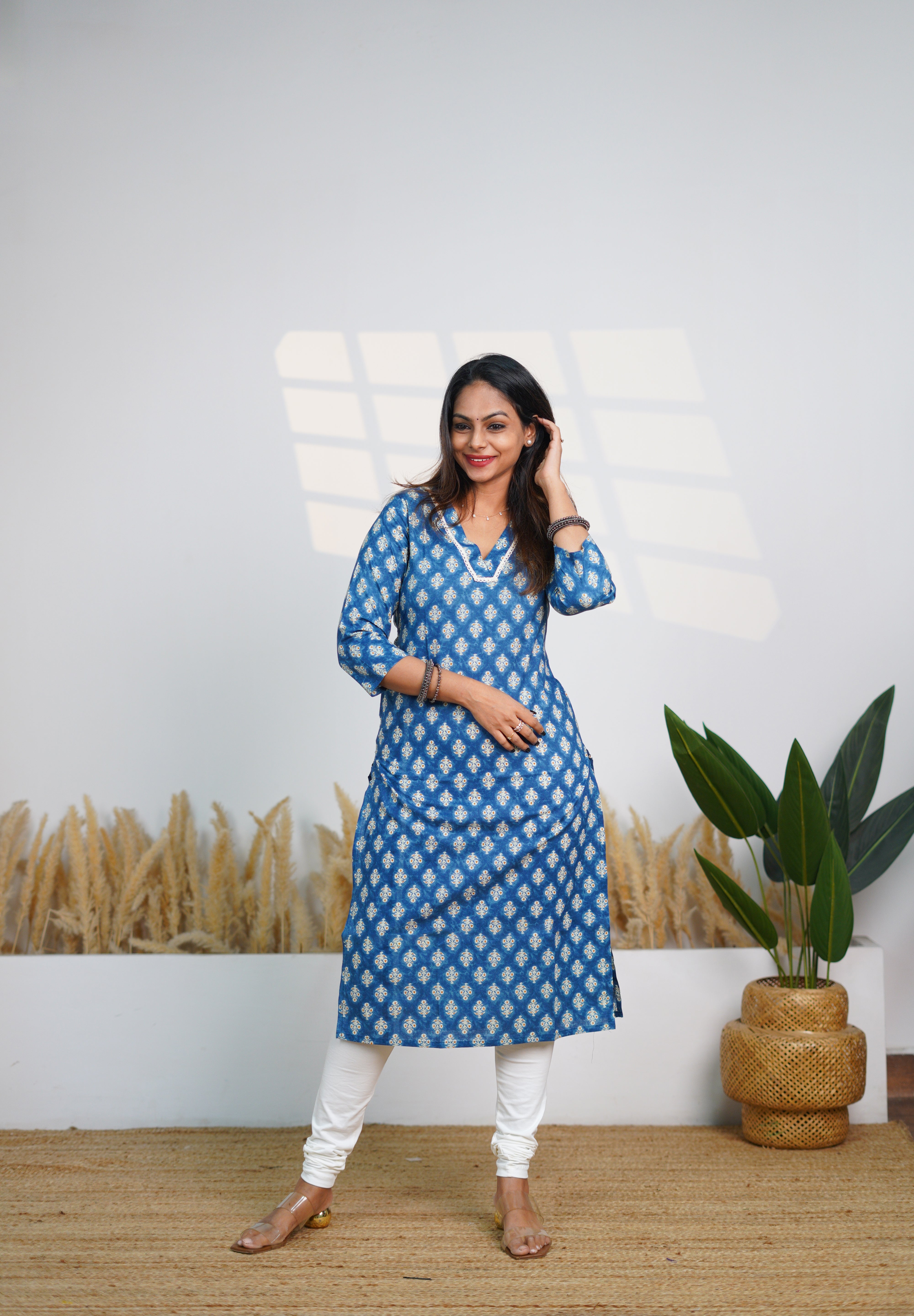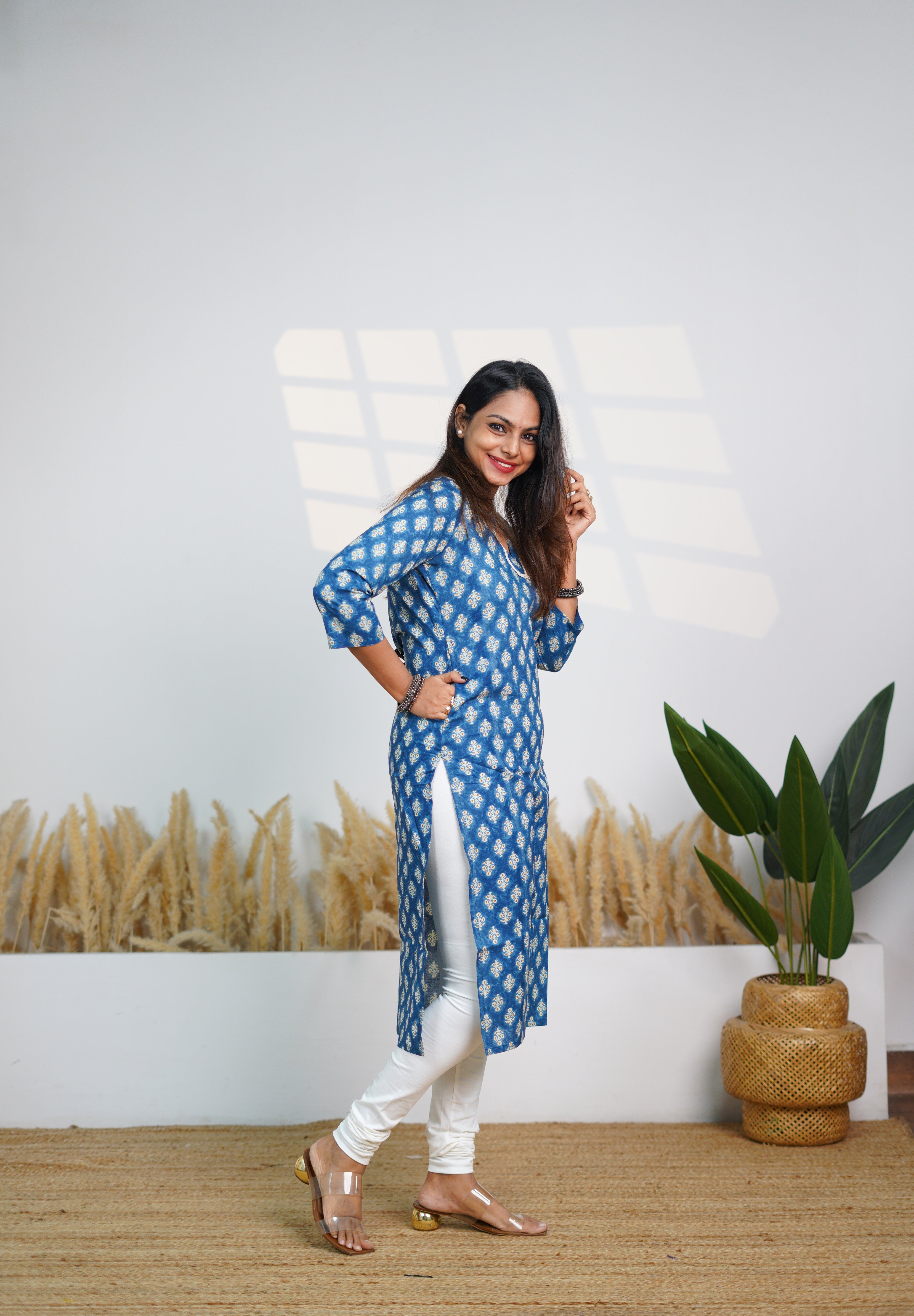 The kurti comes with a floral print all over the kurti with vibrant colour mixtures. It comes with V neck with elbow length sleeves. It can be paired with cotton pants or jeans to pull of that comfortable look!!