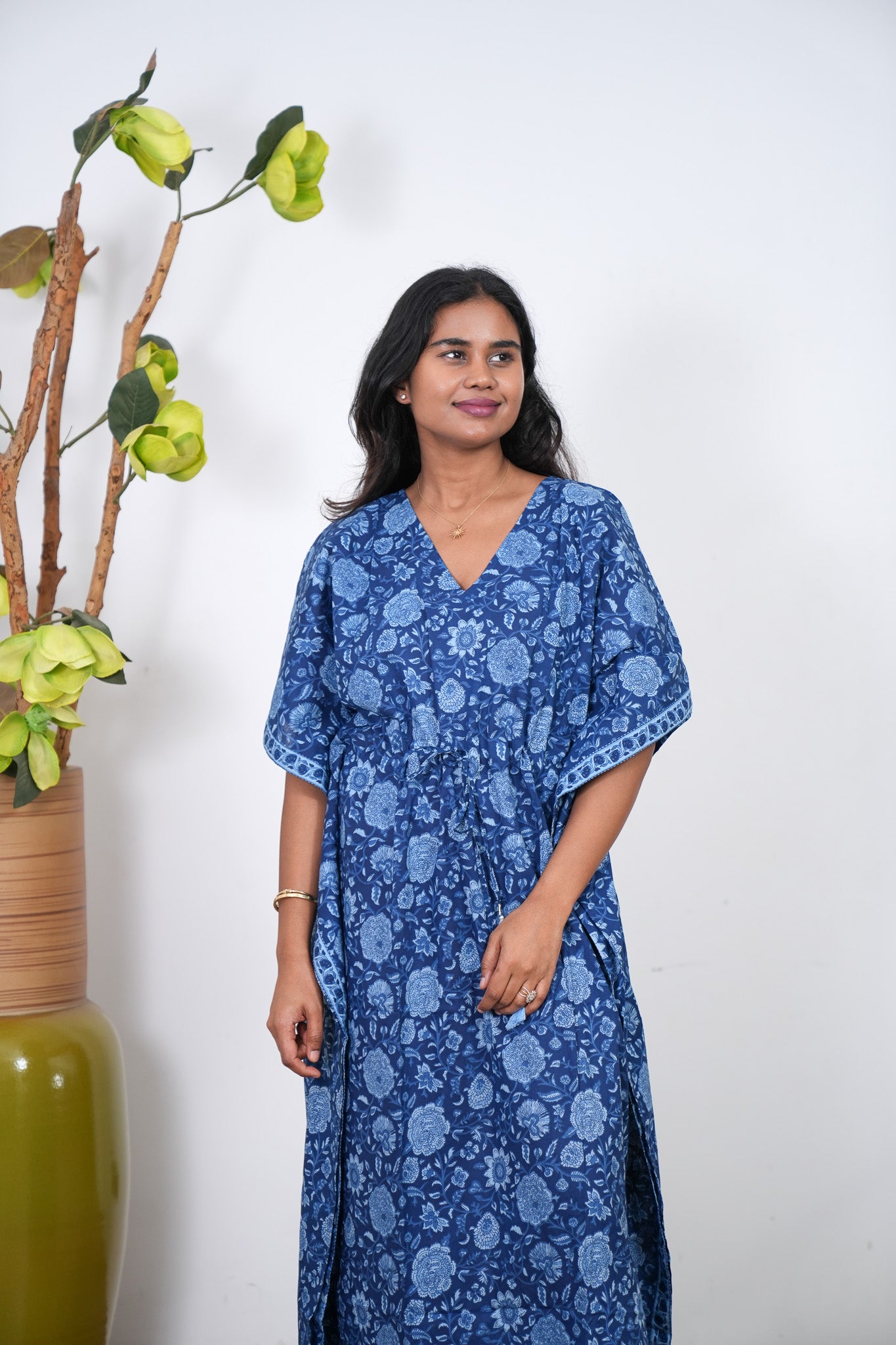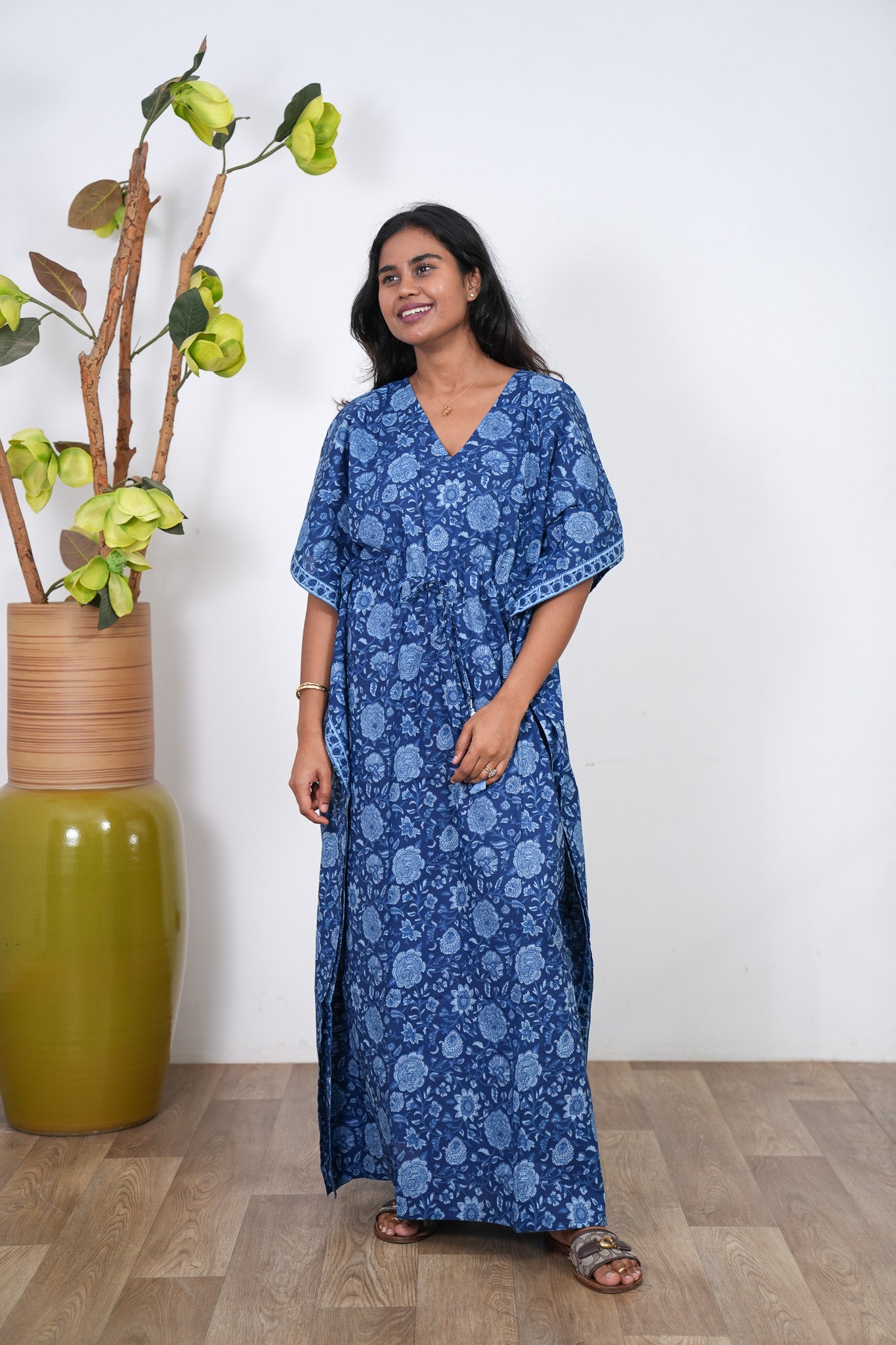 Indigo floral cotton kaftan