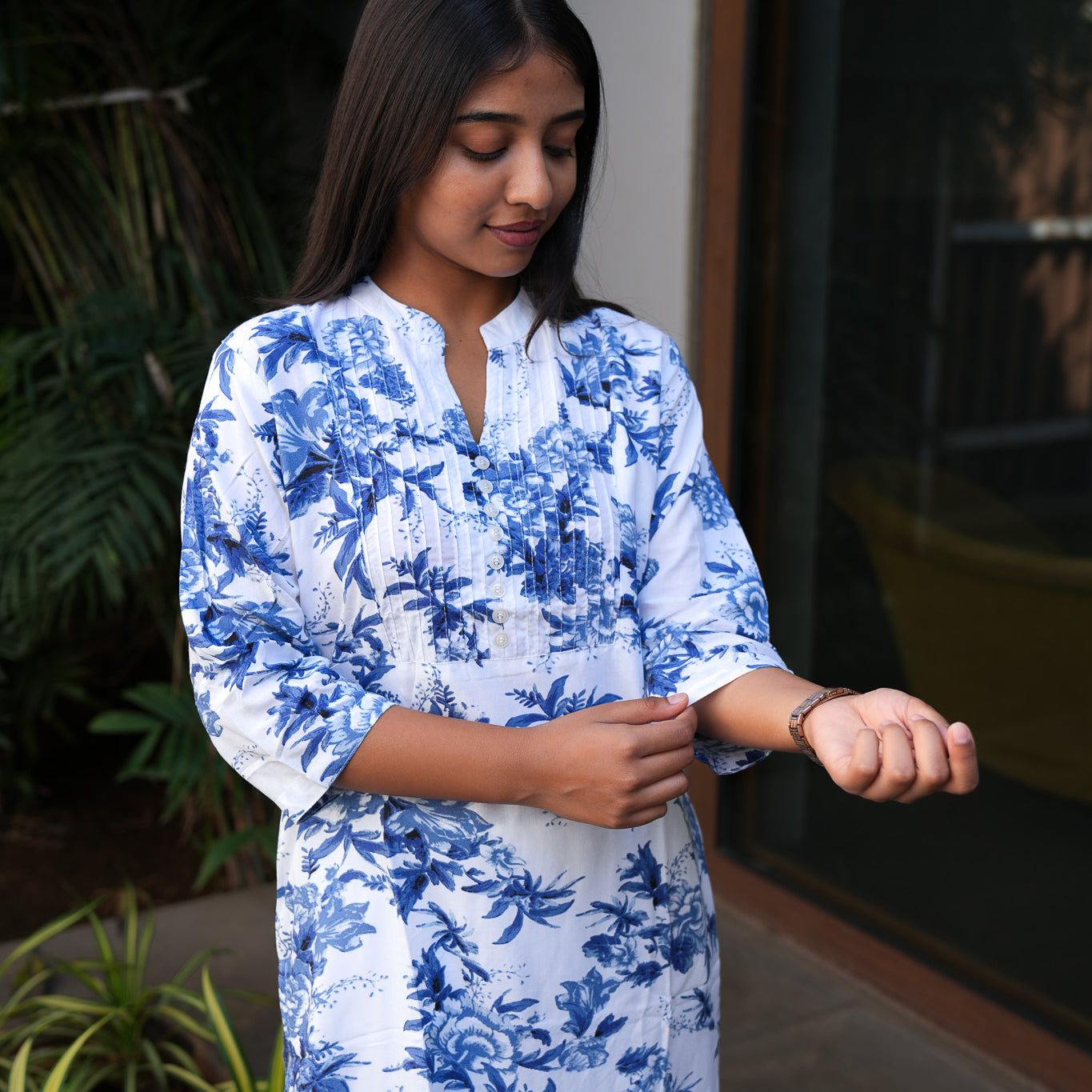 Indigo floral cotton short kurti