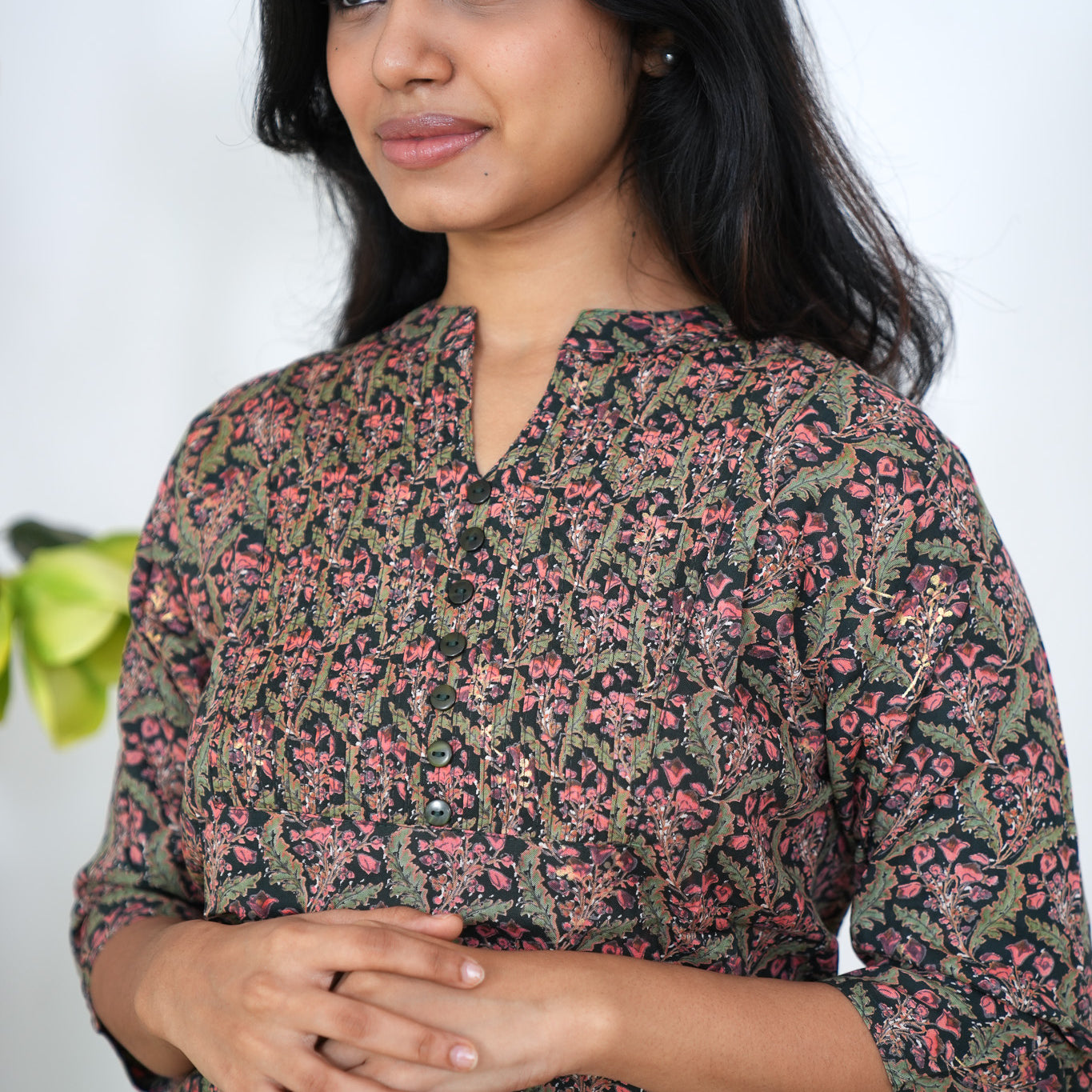This cotton short kurti has mandarin collar and 3/4 length sleeves, they are extremely breathable and light weight making it perfect for all day comfort. They can be paired with jeans , skirt or even cotton pants.