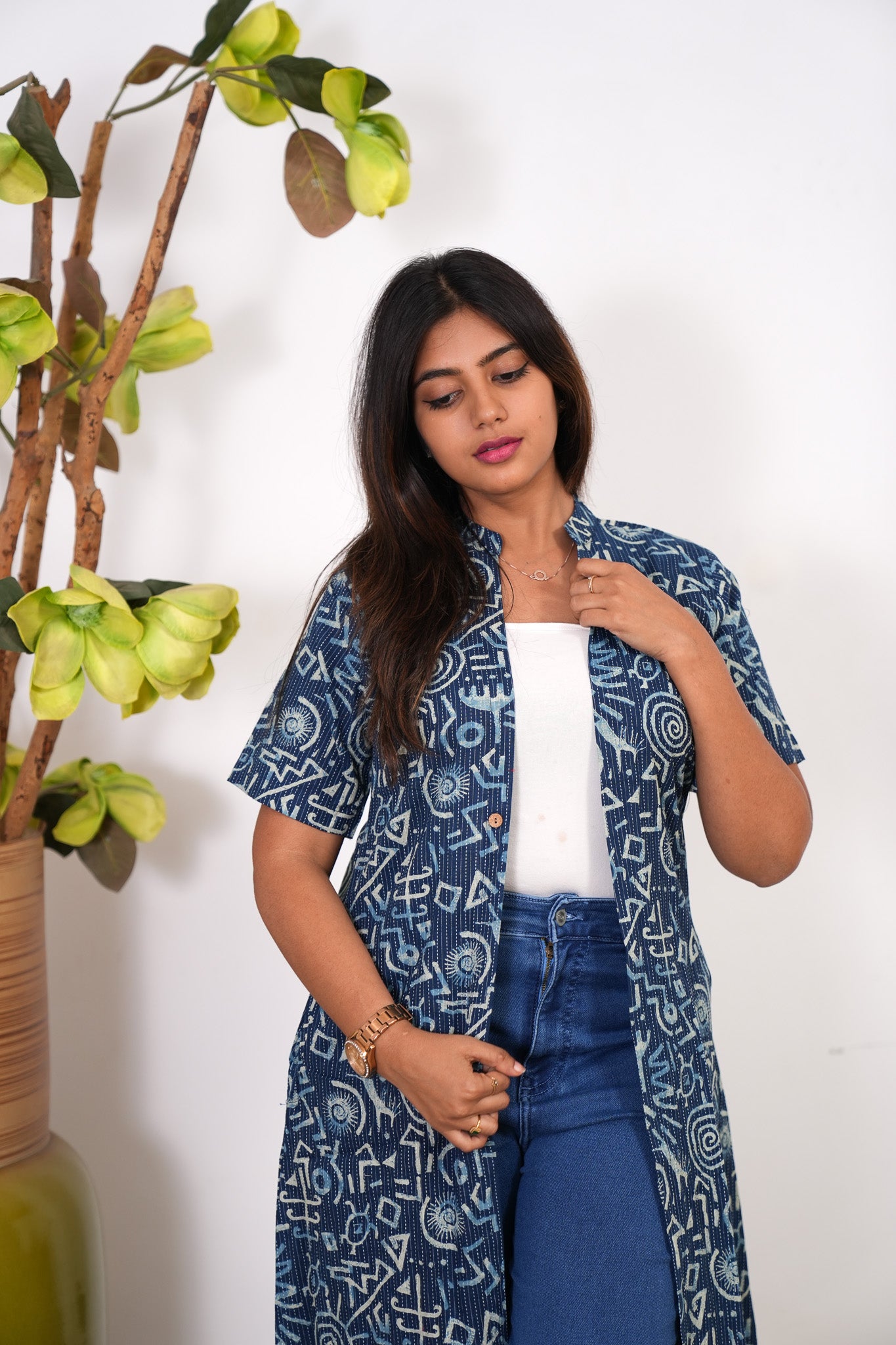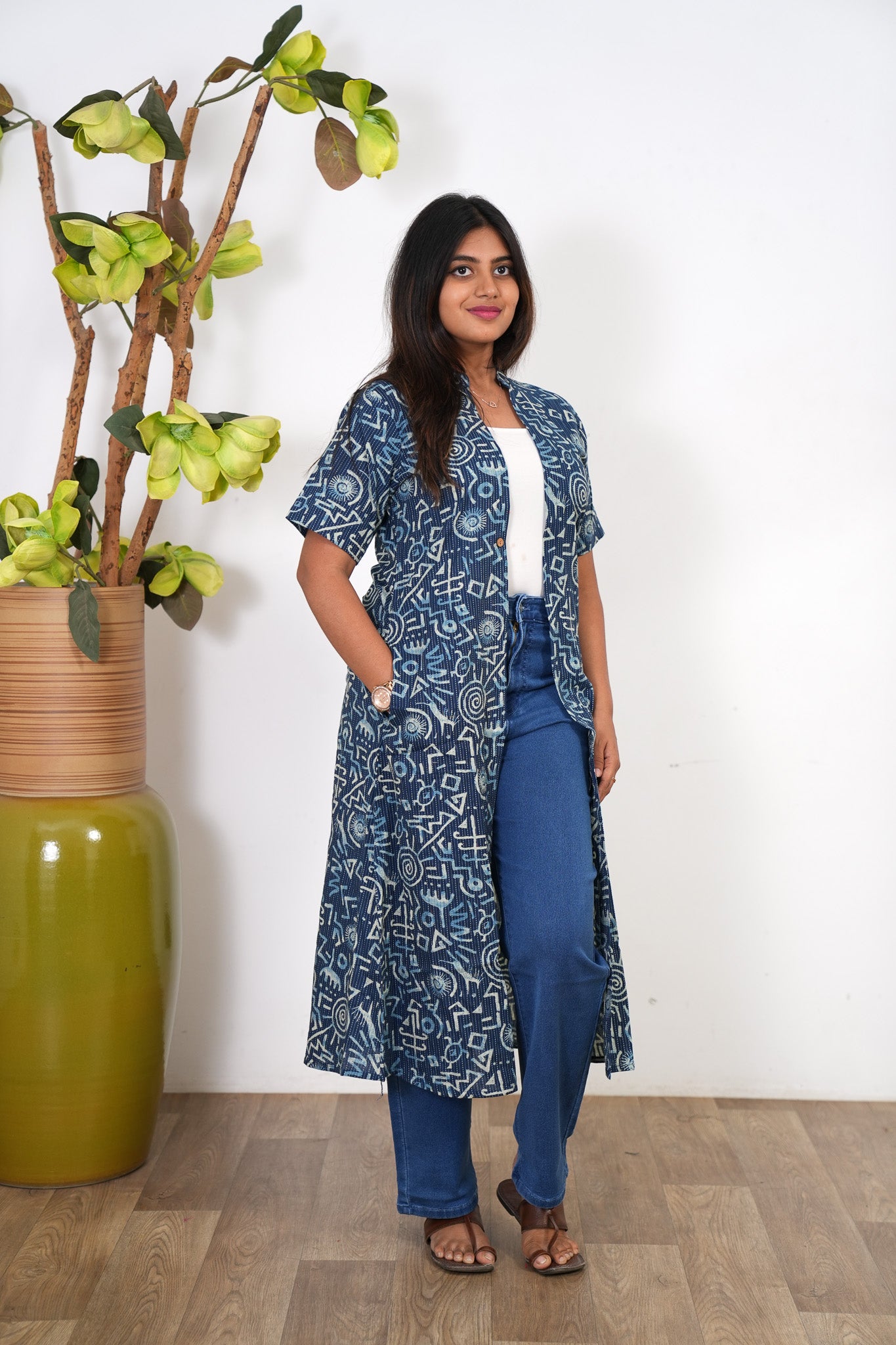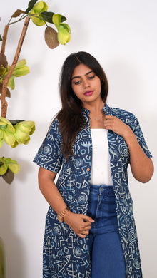 Indigo geometric cotton shrug