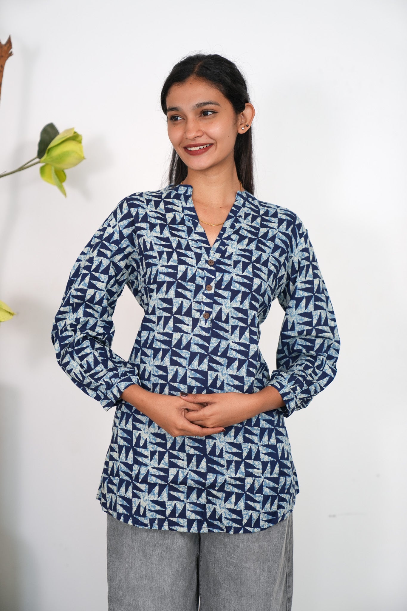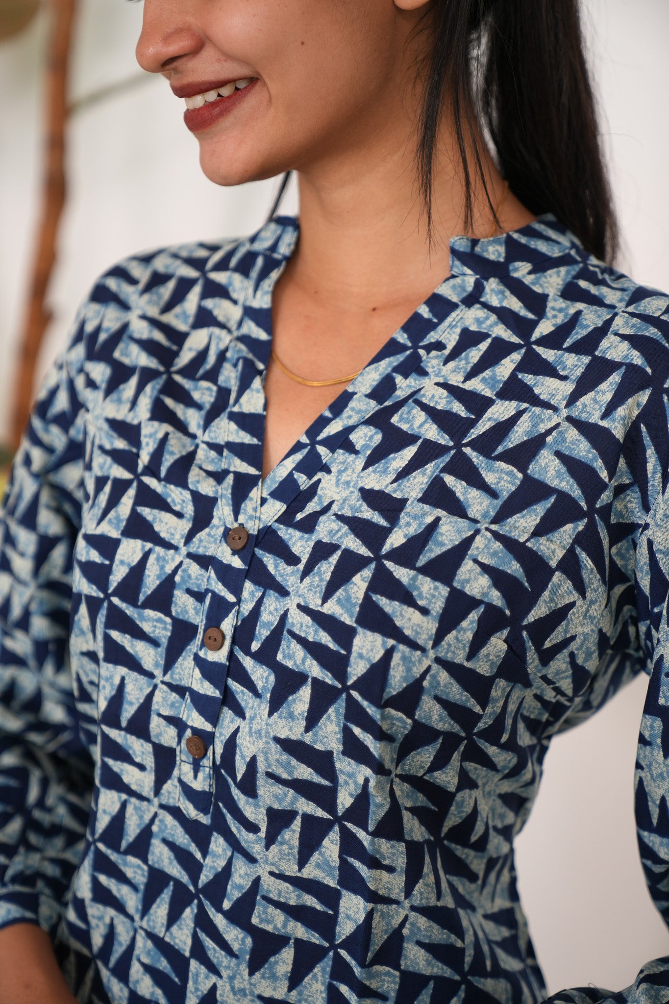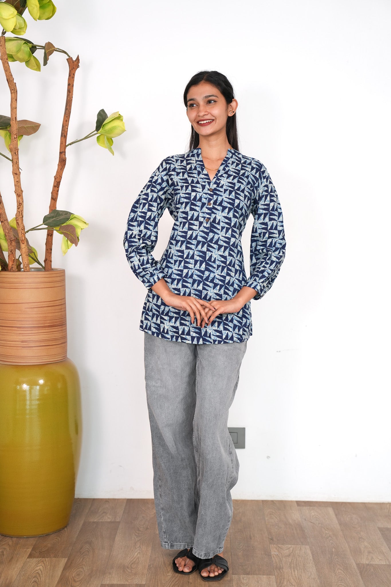 This cotton short kurti has mandarin collar and 3/4 length sleeves they are extremely breathable and light weight making it perfect for all day comfort. They can be paired with jeans , skirt or even cotton pants.