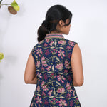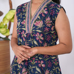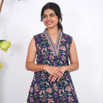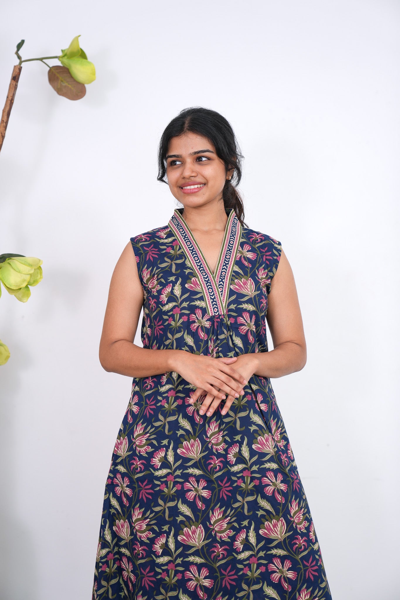 Ira cotton v neck gathered dress- Midnight blue(attached sleeves)