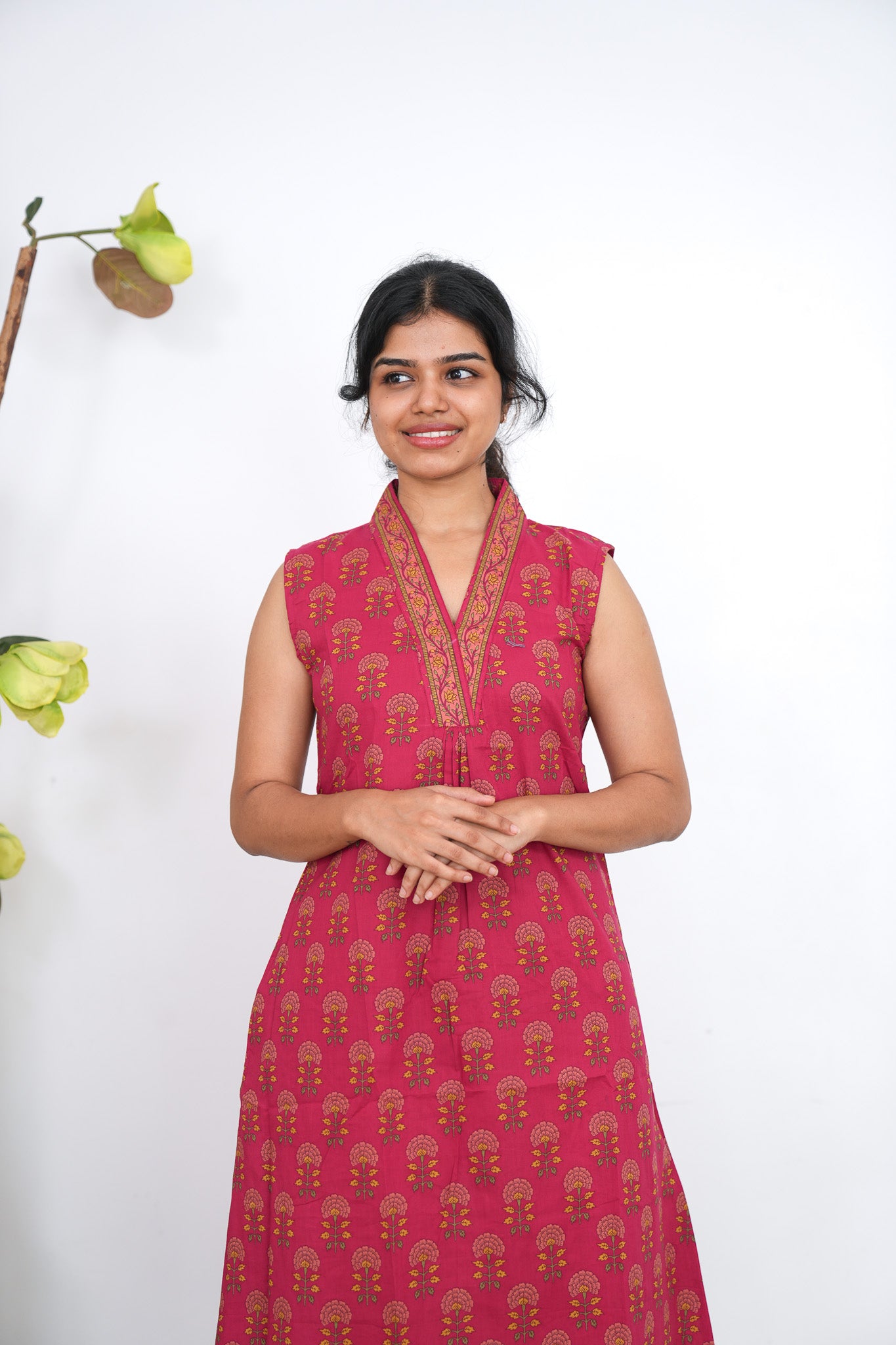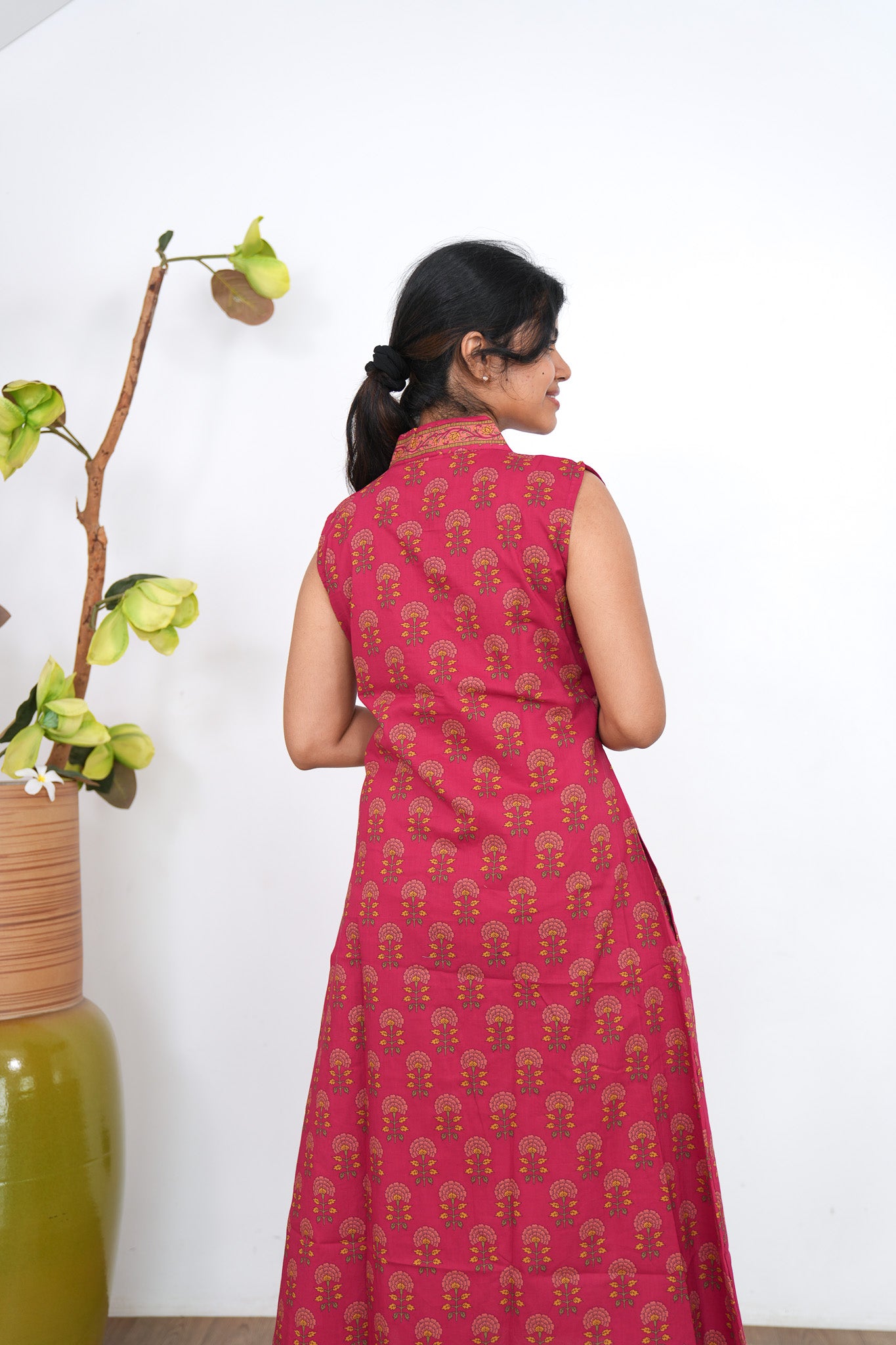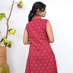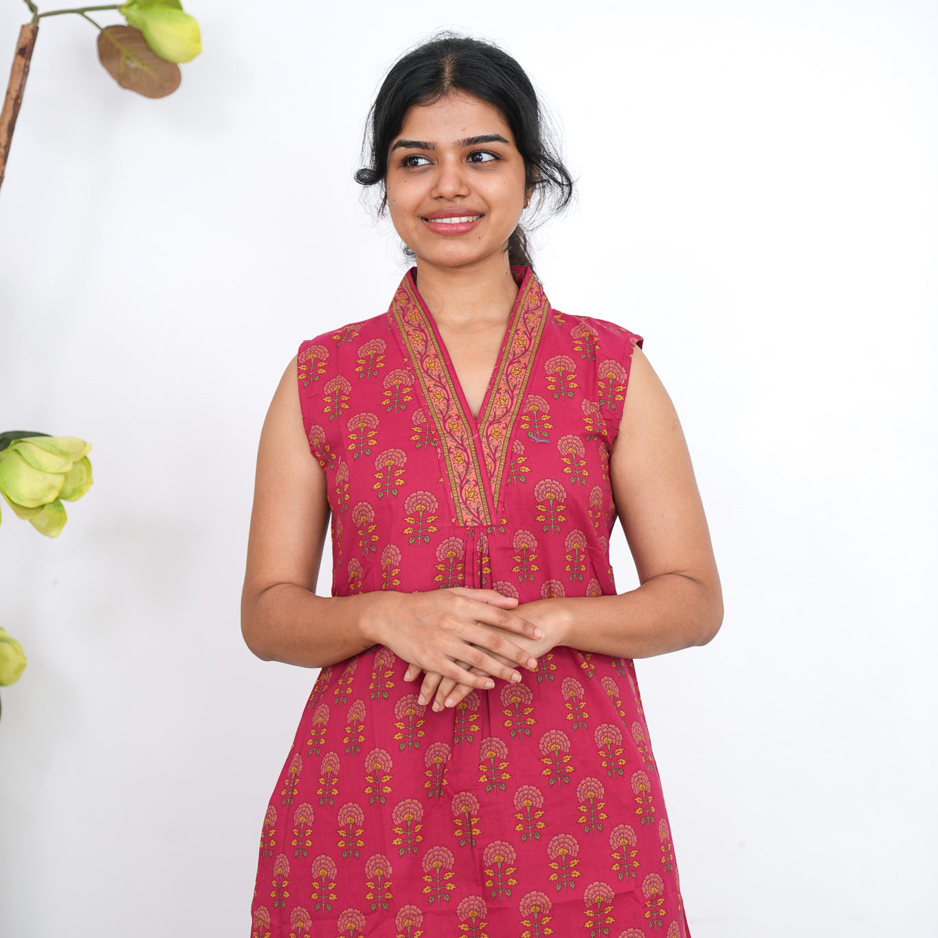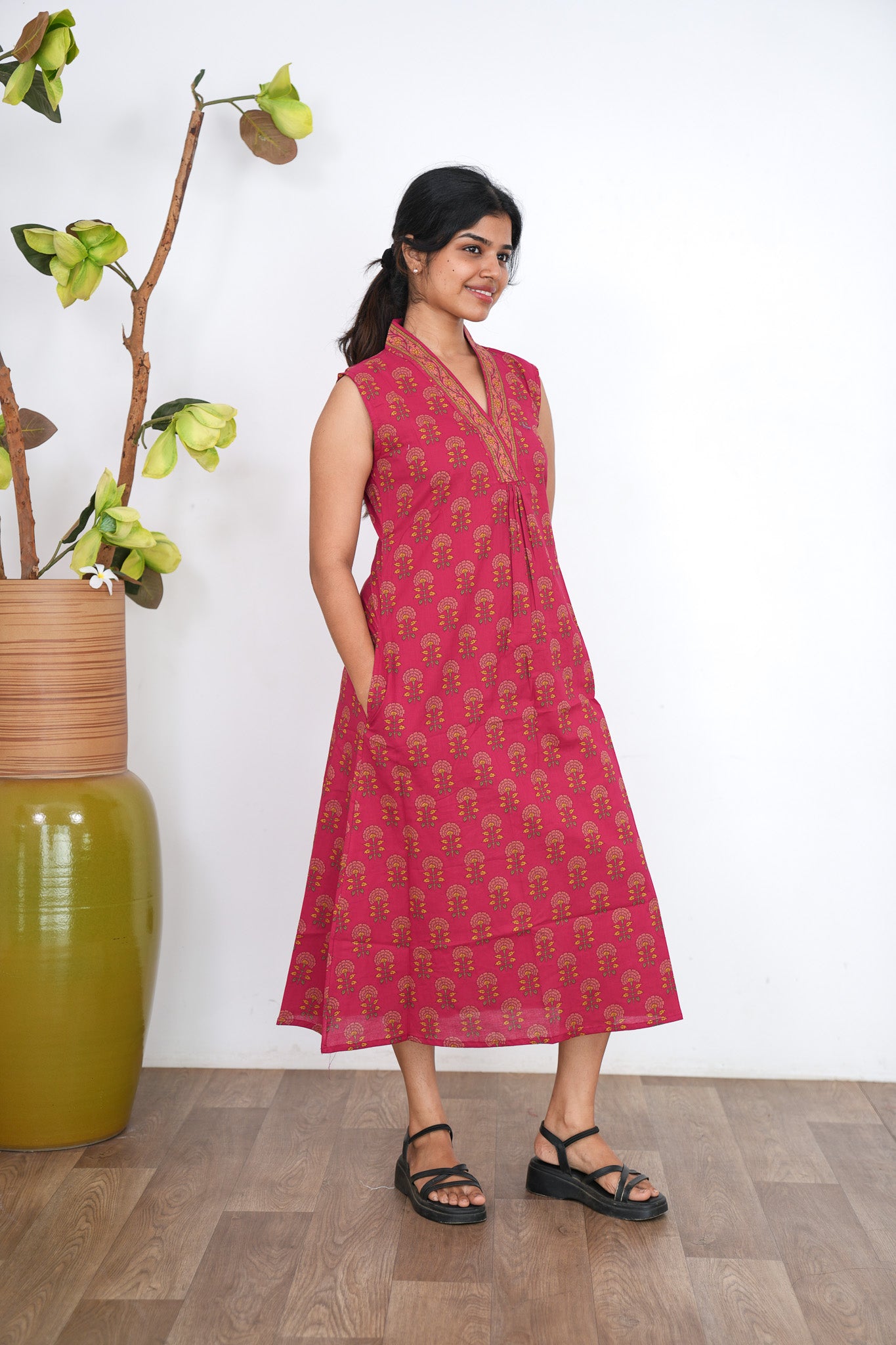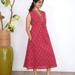 Ira cotton v neck gathered dress -Deep red(attached sleeves)