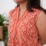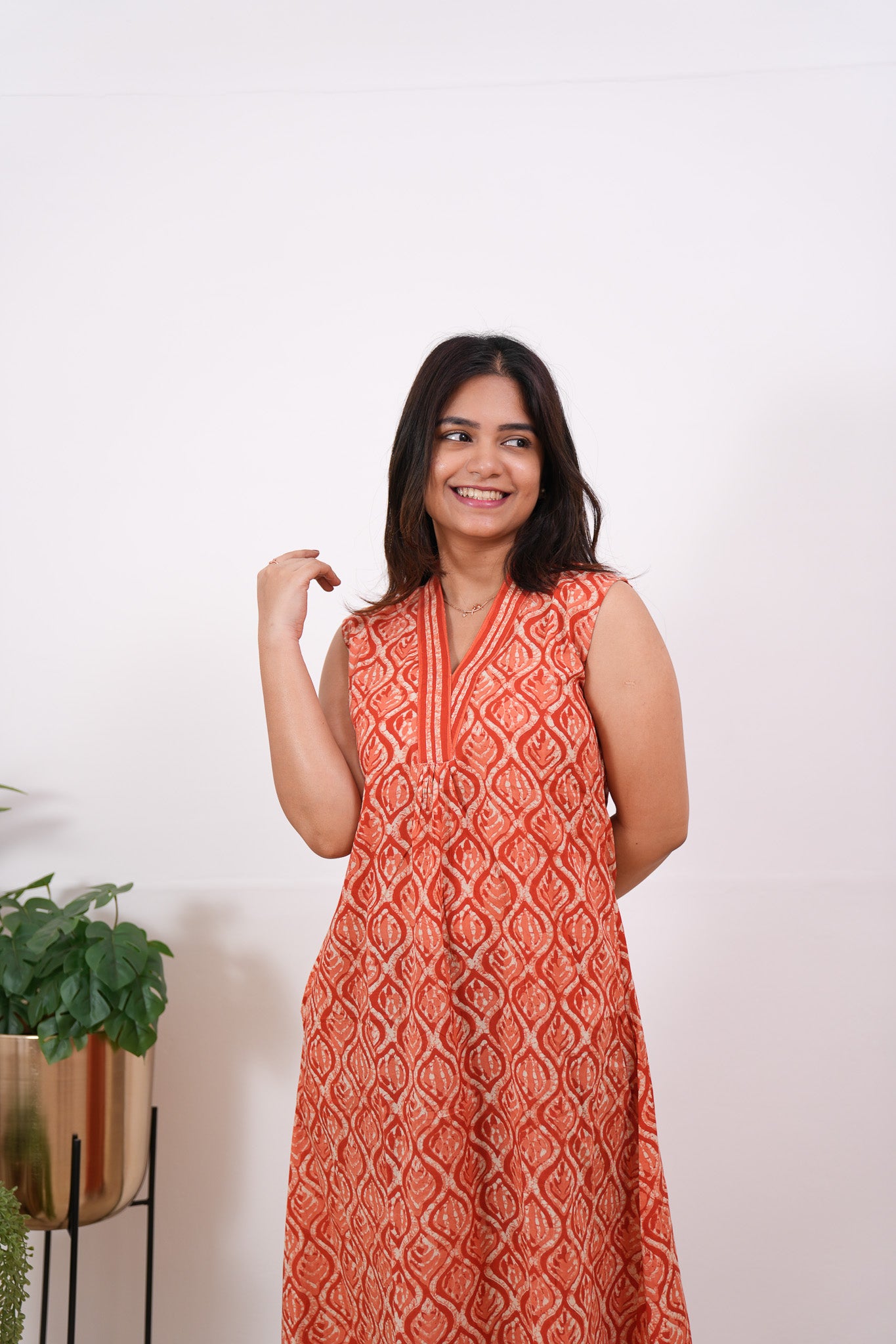 Ira cotton v neck gathered dress-Orange (attached sleeves)