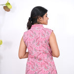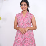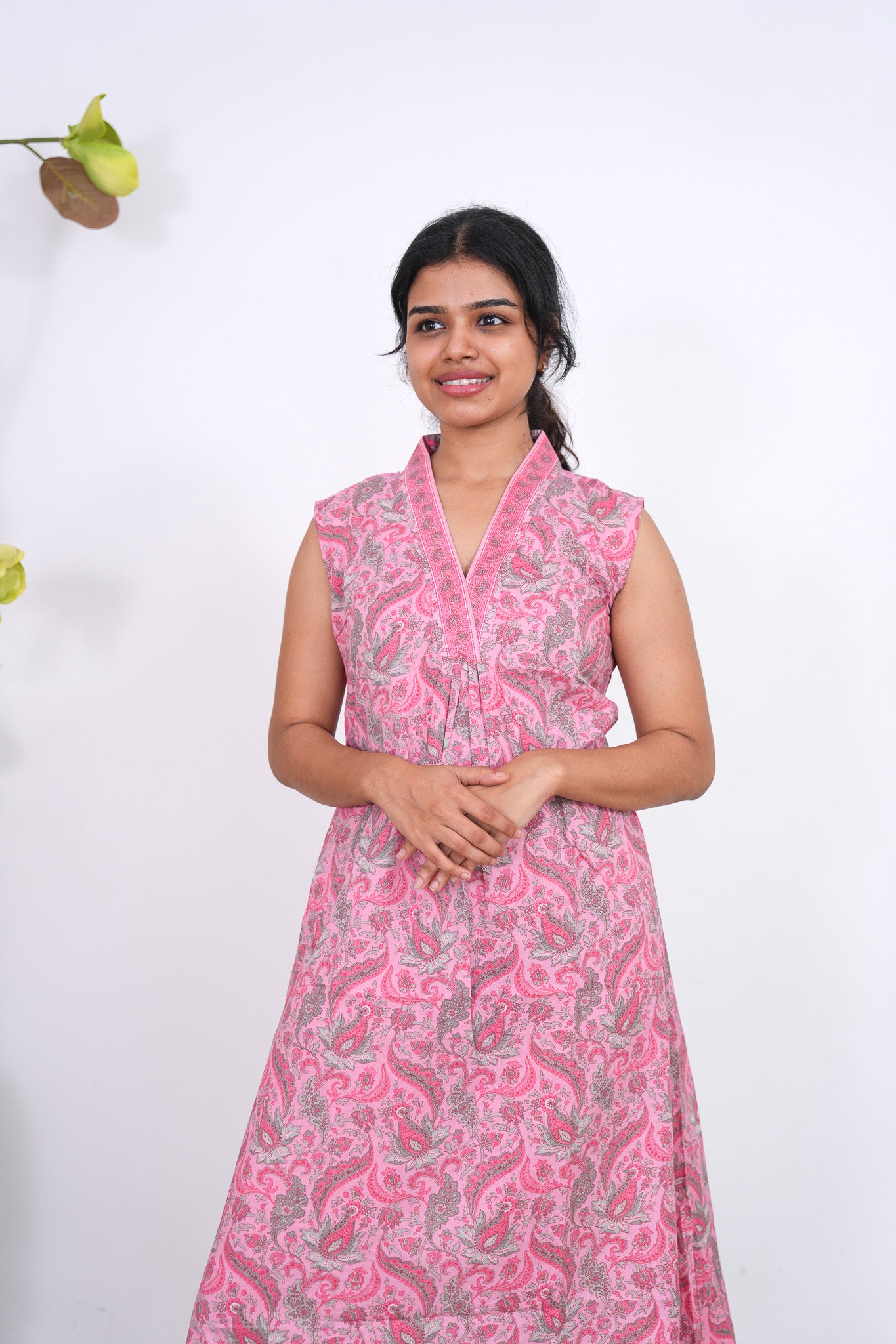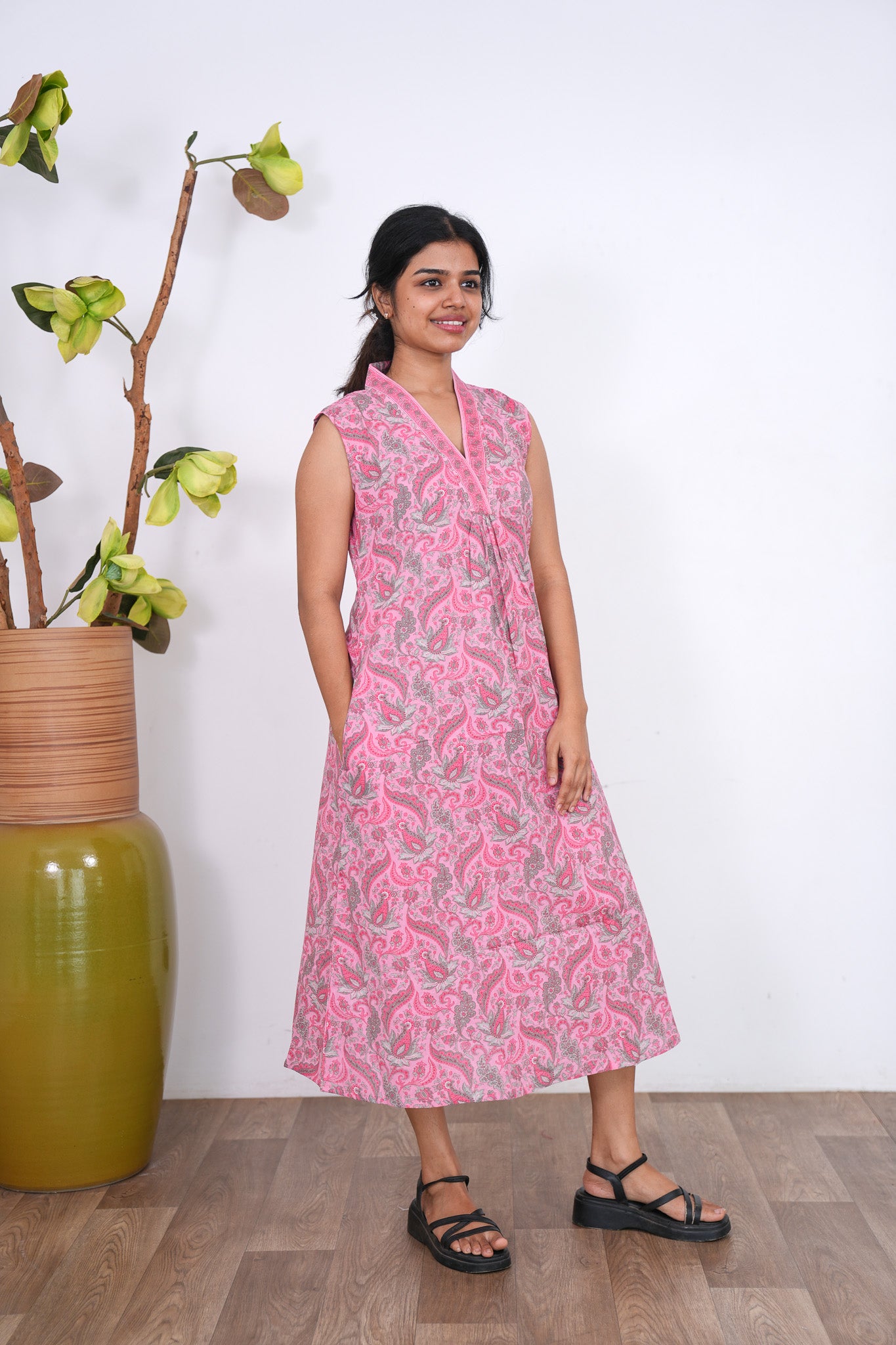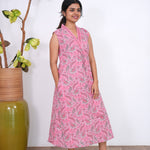 Ira cotton v neck gathered dress -Flamingo pink(attached sleeves)