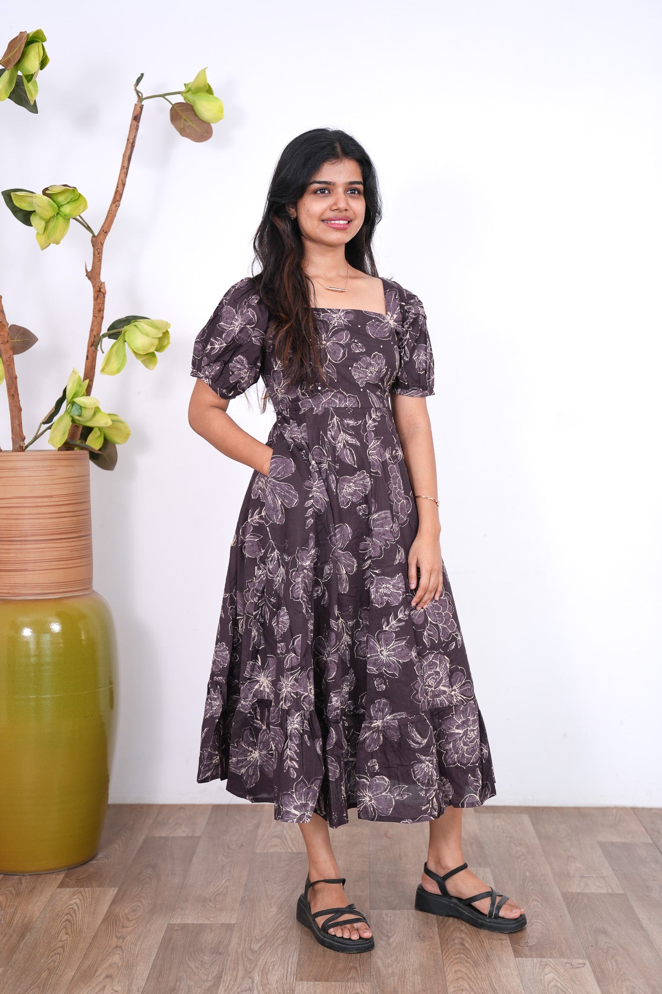 This cotton midi dress has a square neck and balloon sleeves . This dress is so versatile and so comfortable that you would want to wear it for shopping, brunch plans with girls and even dinner dates.