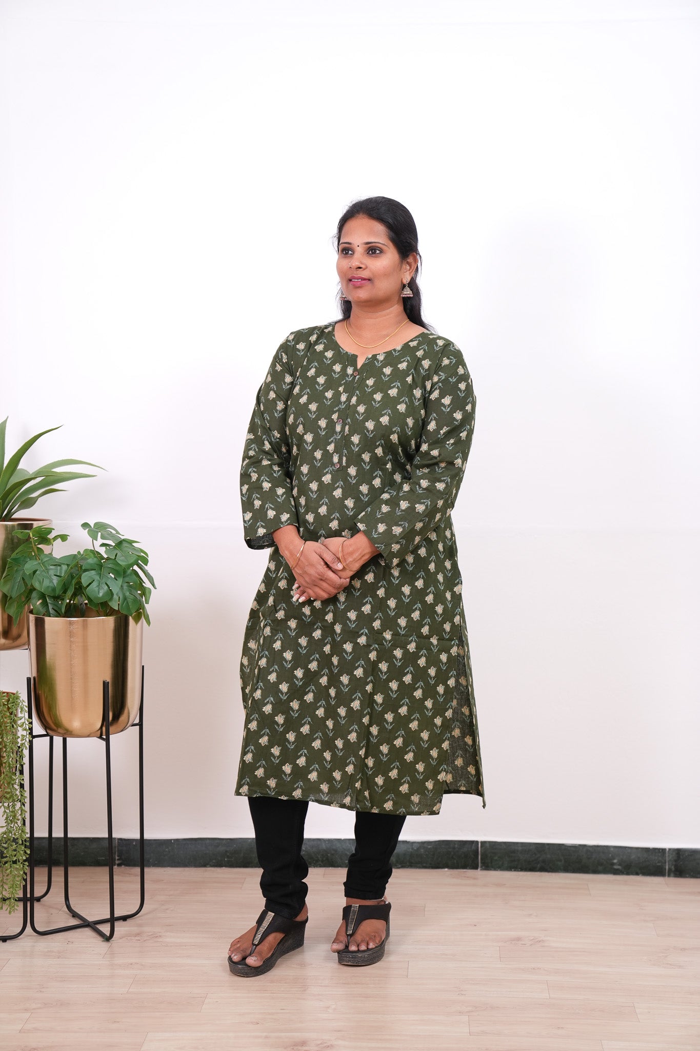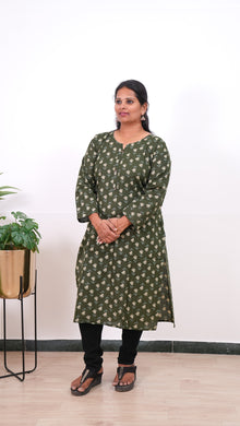 The kurti comes with a floral print all over the kurti with vibrant colour mixtures. It comes with round neck with elbow length sleeves. It can be paired with cotton pants or jeans to pull of that comfortable look!!