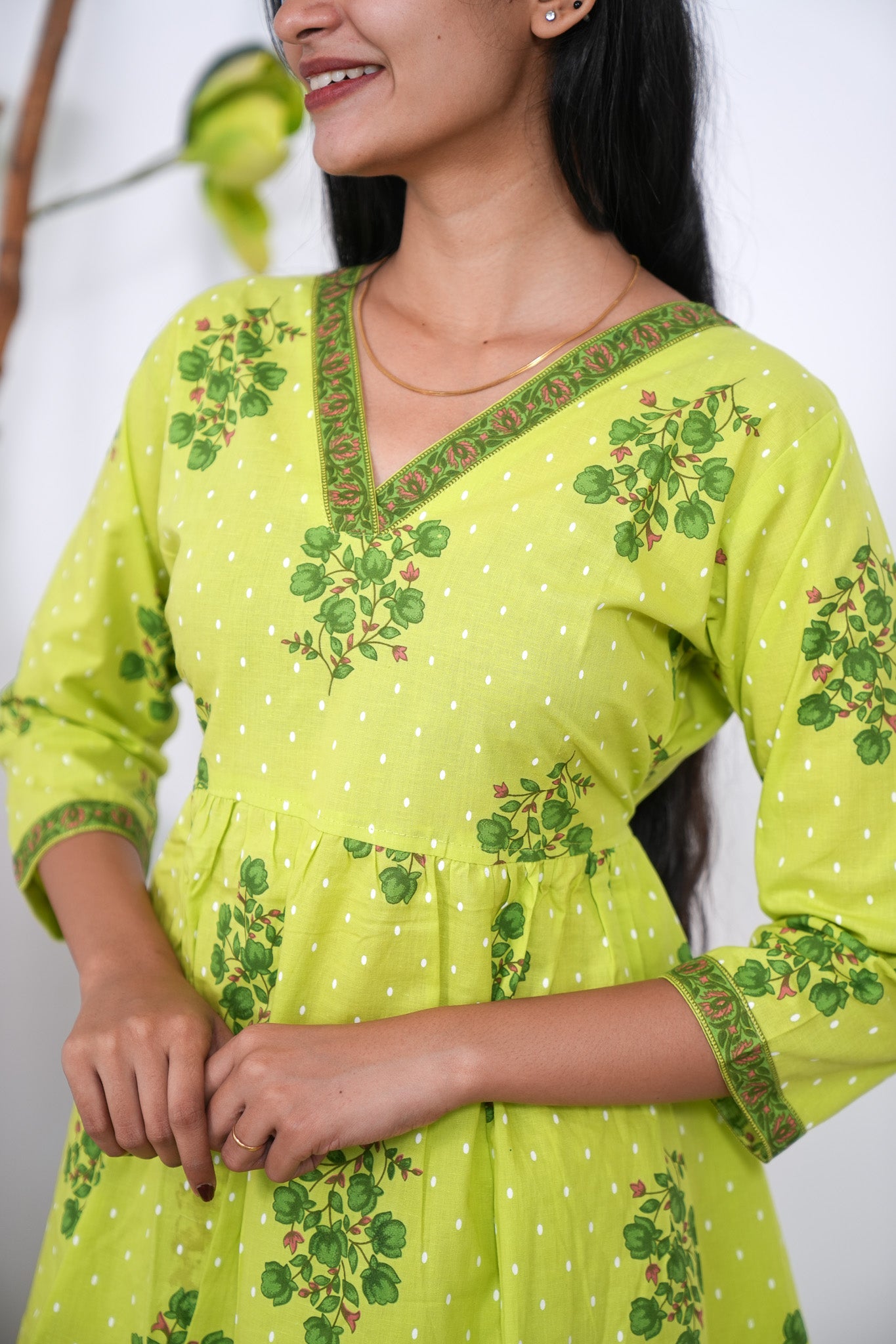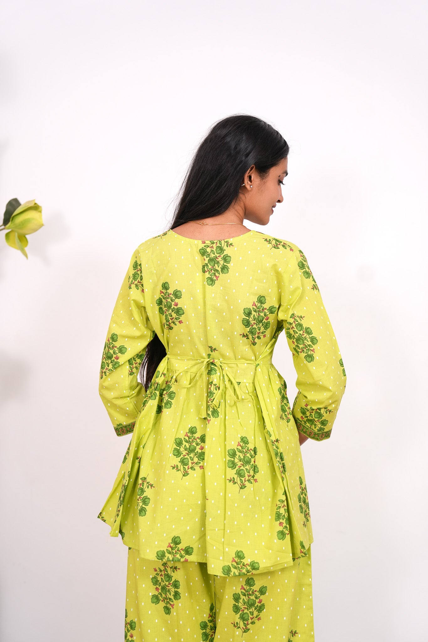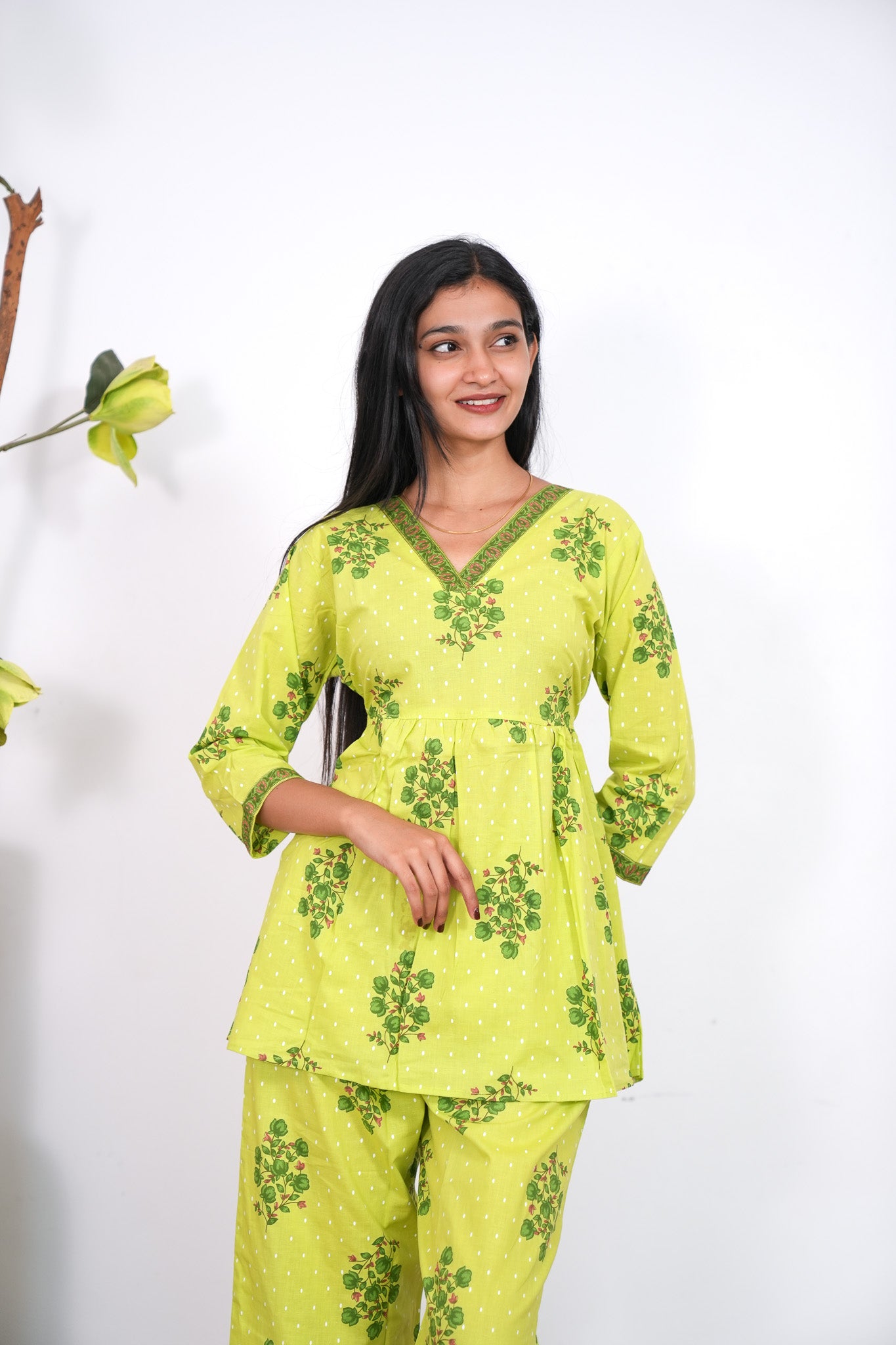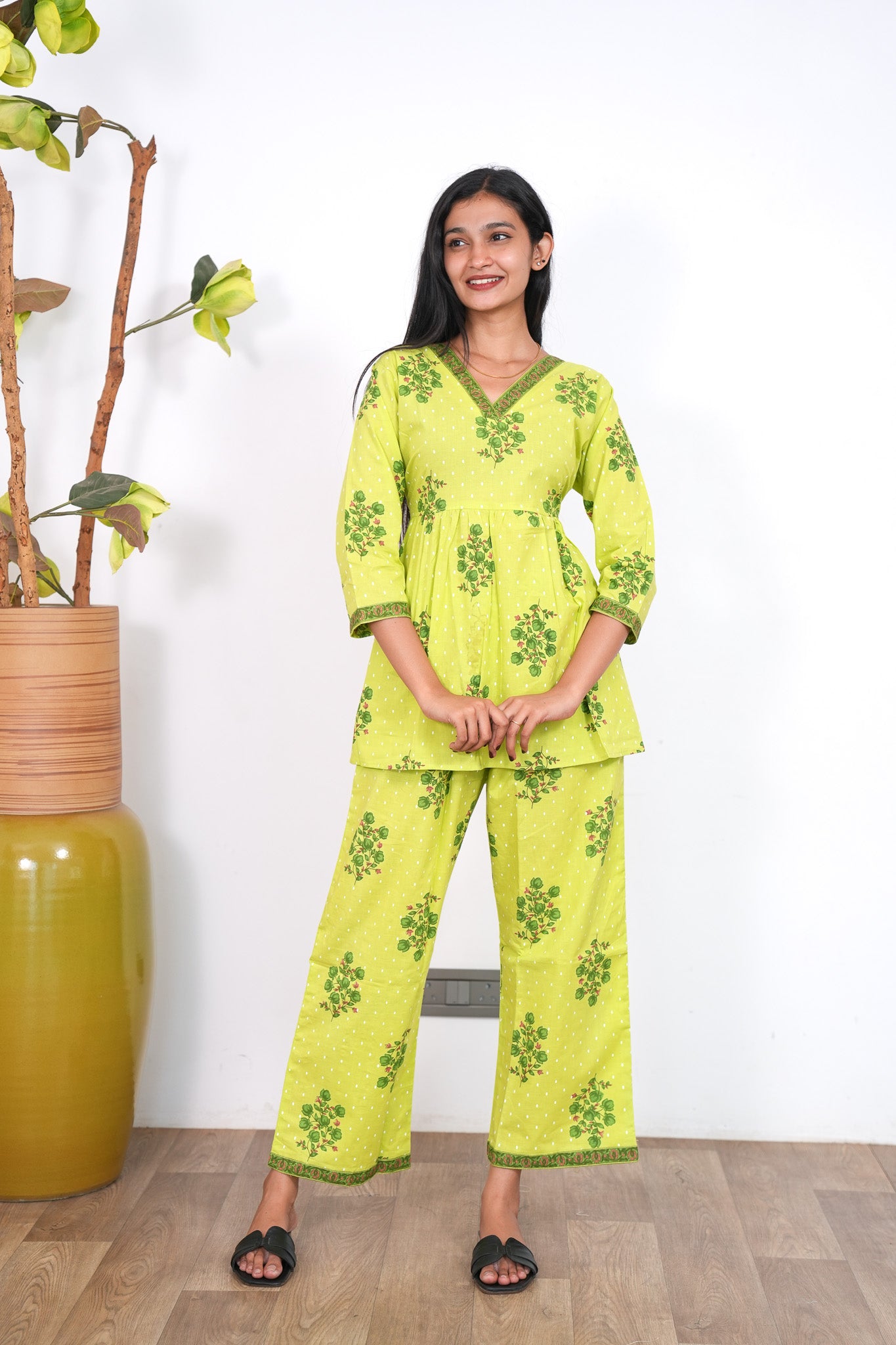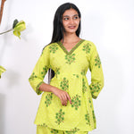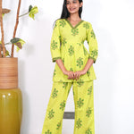 Lime green V neck cotton co-ords set