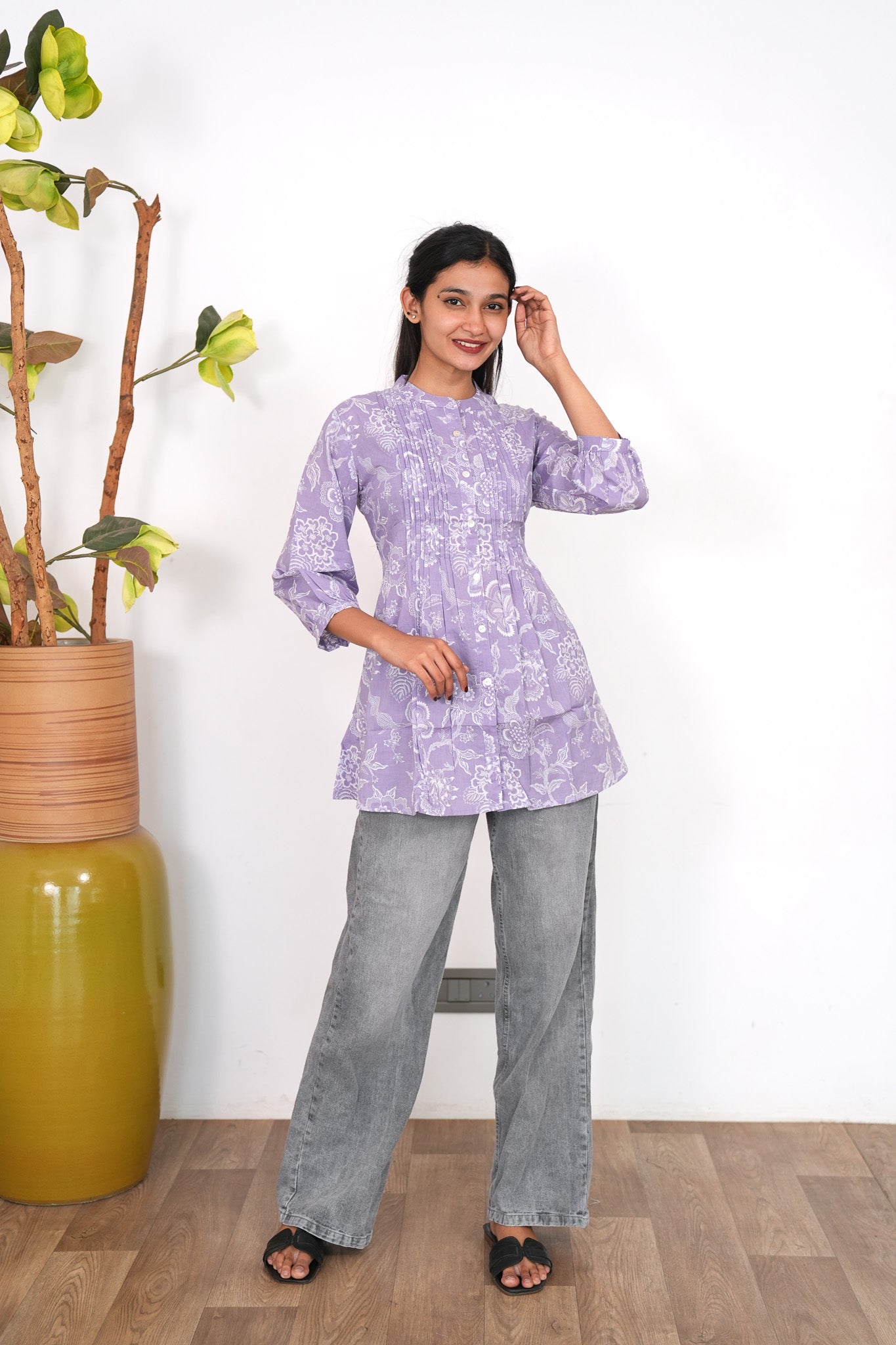 Lavendula cotton pintex short kurti
