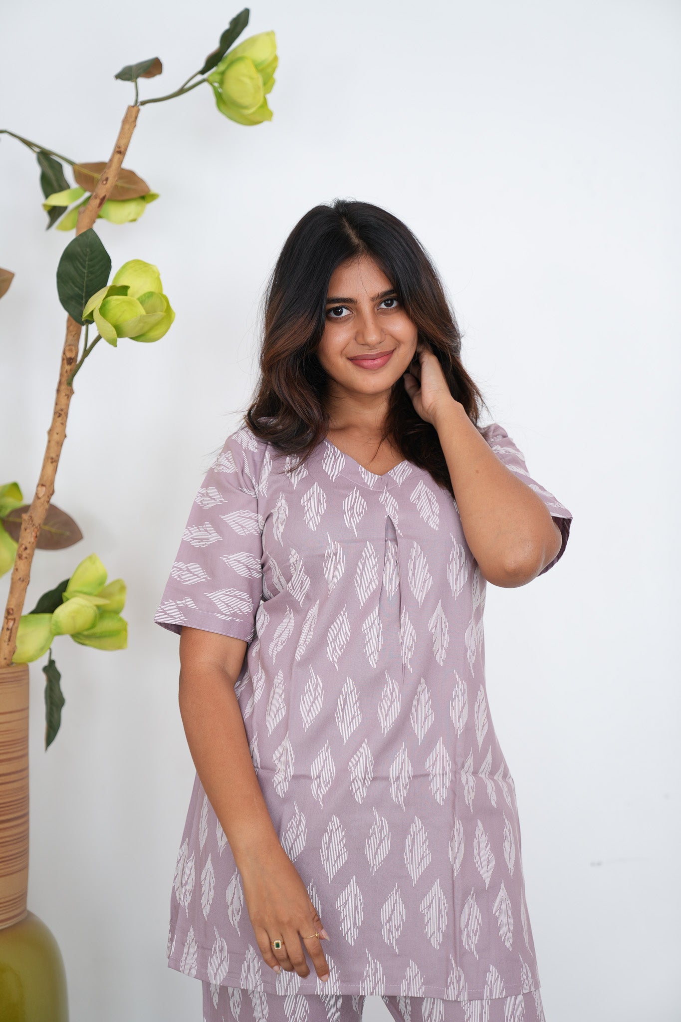 These Co-ords are so cozy, comfortable and chic making it perfect to relax at home or sleep in them. The top has a V neck with short length sleeves. Pant comes with elastic and it has a straight fit.