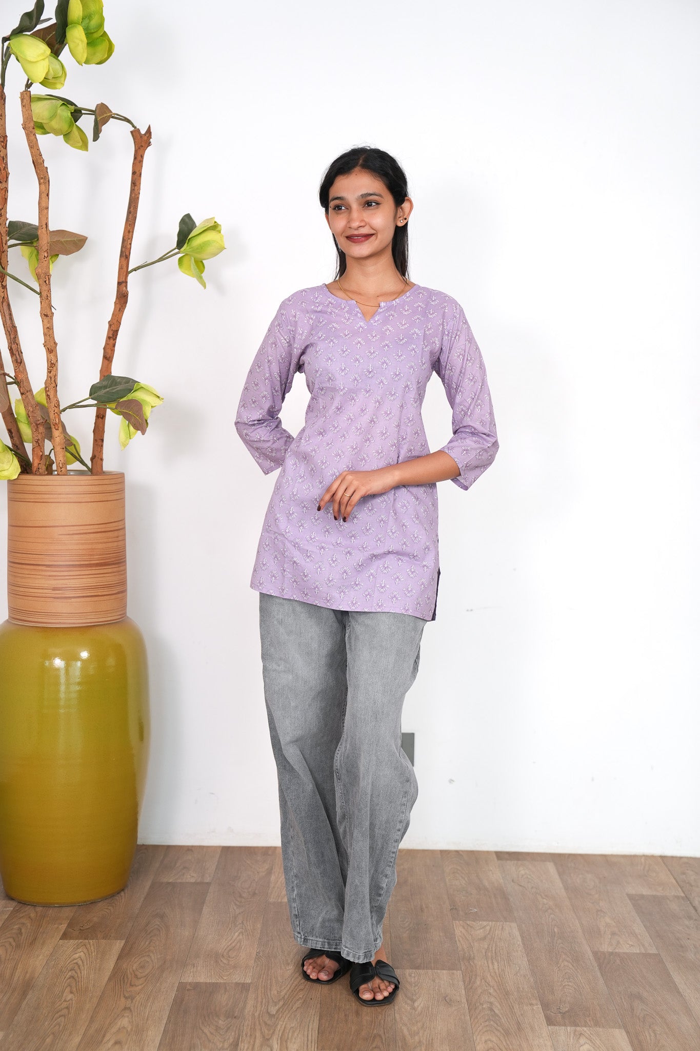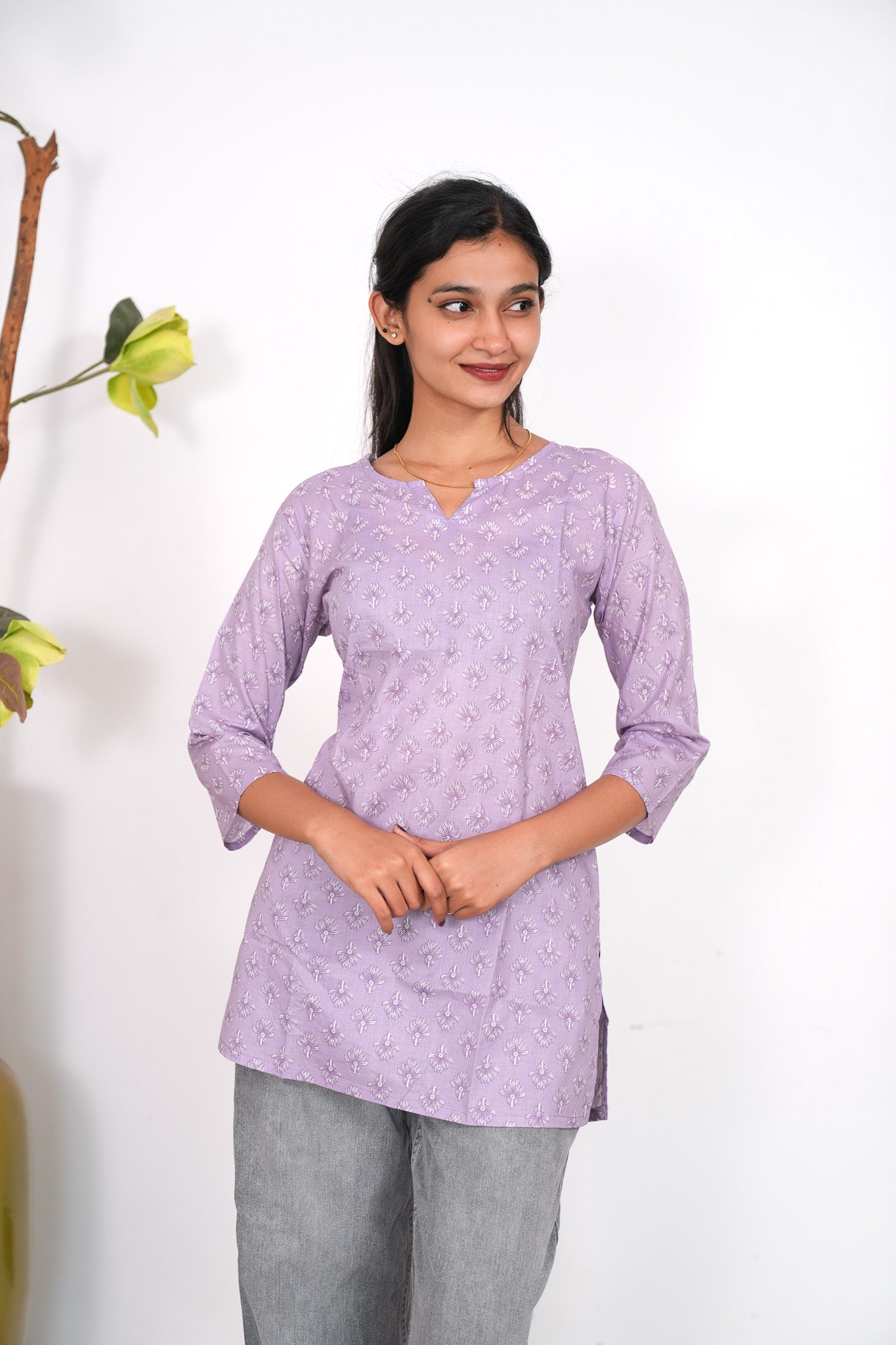 This cotton short kurti has round neck and 3/4 length sleeves they are extremely breathable and light weight making it perfect for all day comfort. They can be paired with jeans , skirt or even cotton pants.