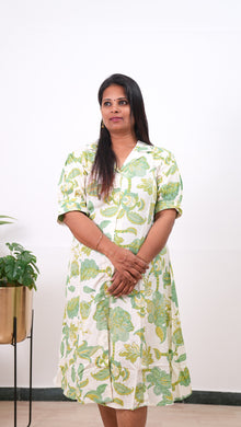 Turquoise lillies cotton shirt dress(attached sleeves)