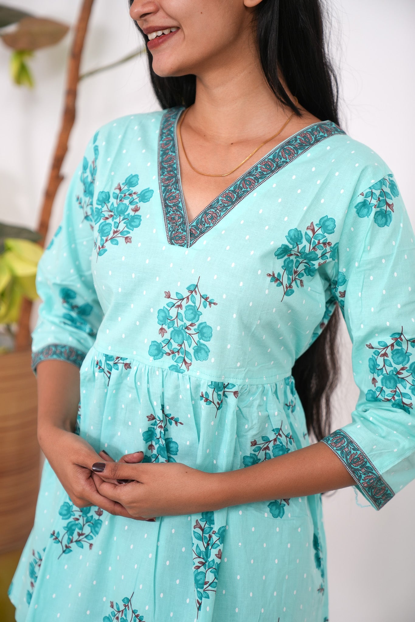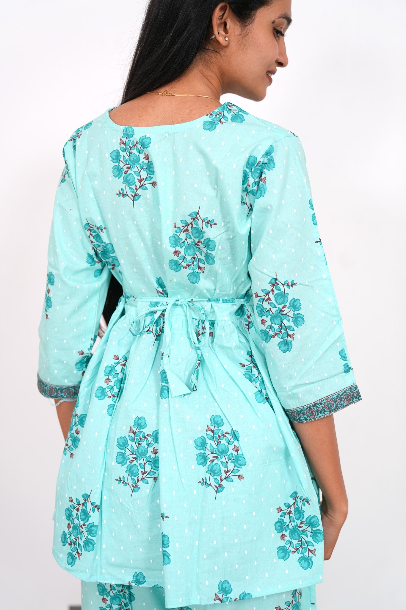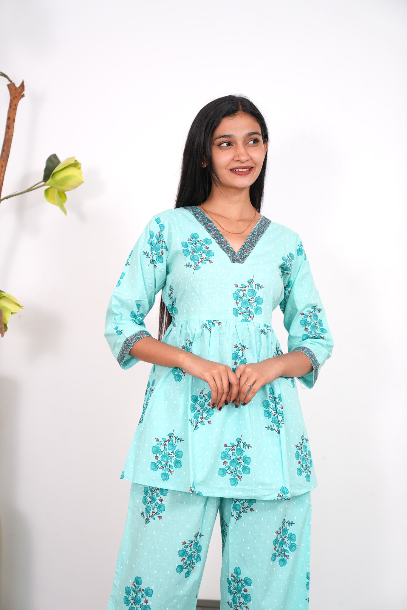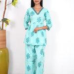 Turquoise cotton co-ords set which can be paired together or with jeans for a easy breezy summer outfit.